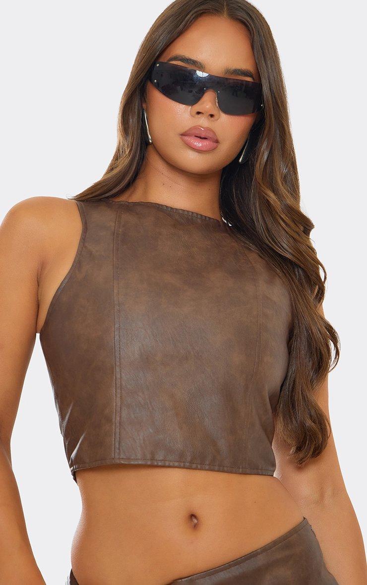 Sweetheart Neckline Tailored Crop Top In Chocolate Brown