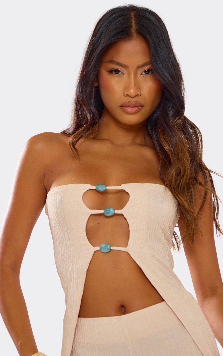 Bandeau Lace Up Detail Crop Top In Stone Faux Leather