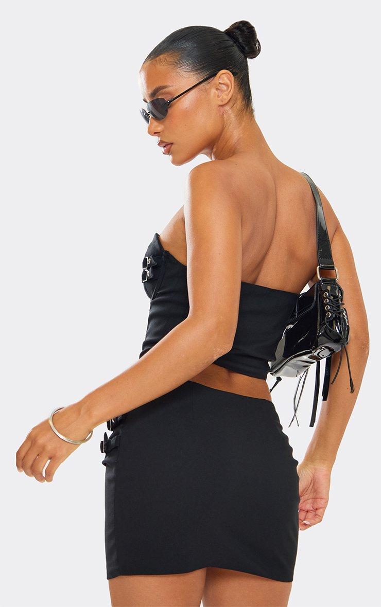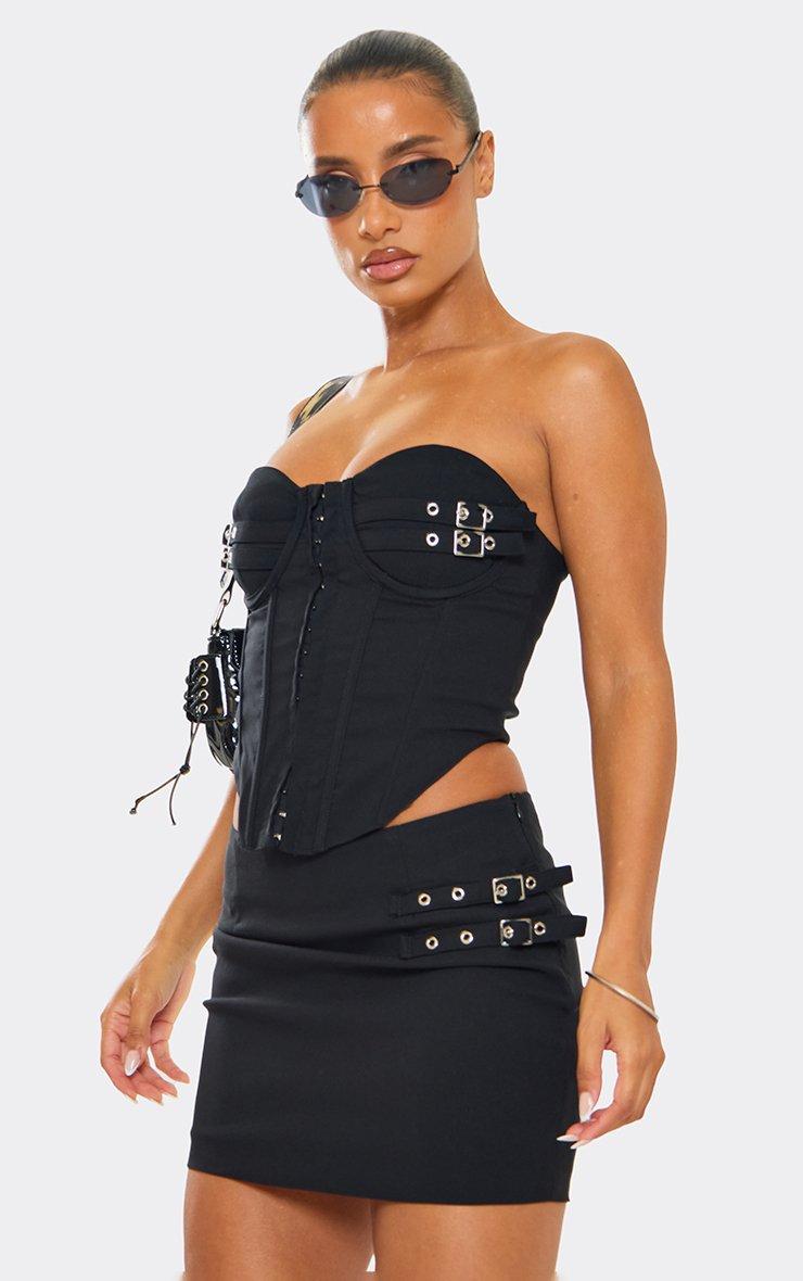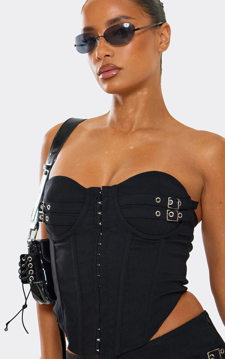 Bandeau Buckle Hook And Eye Detail Corset In Black