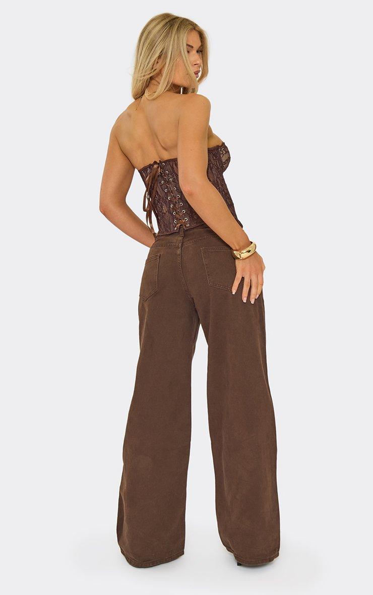 Bandeau Structured Tie Back Detail Corset Top In Brown Lace