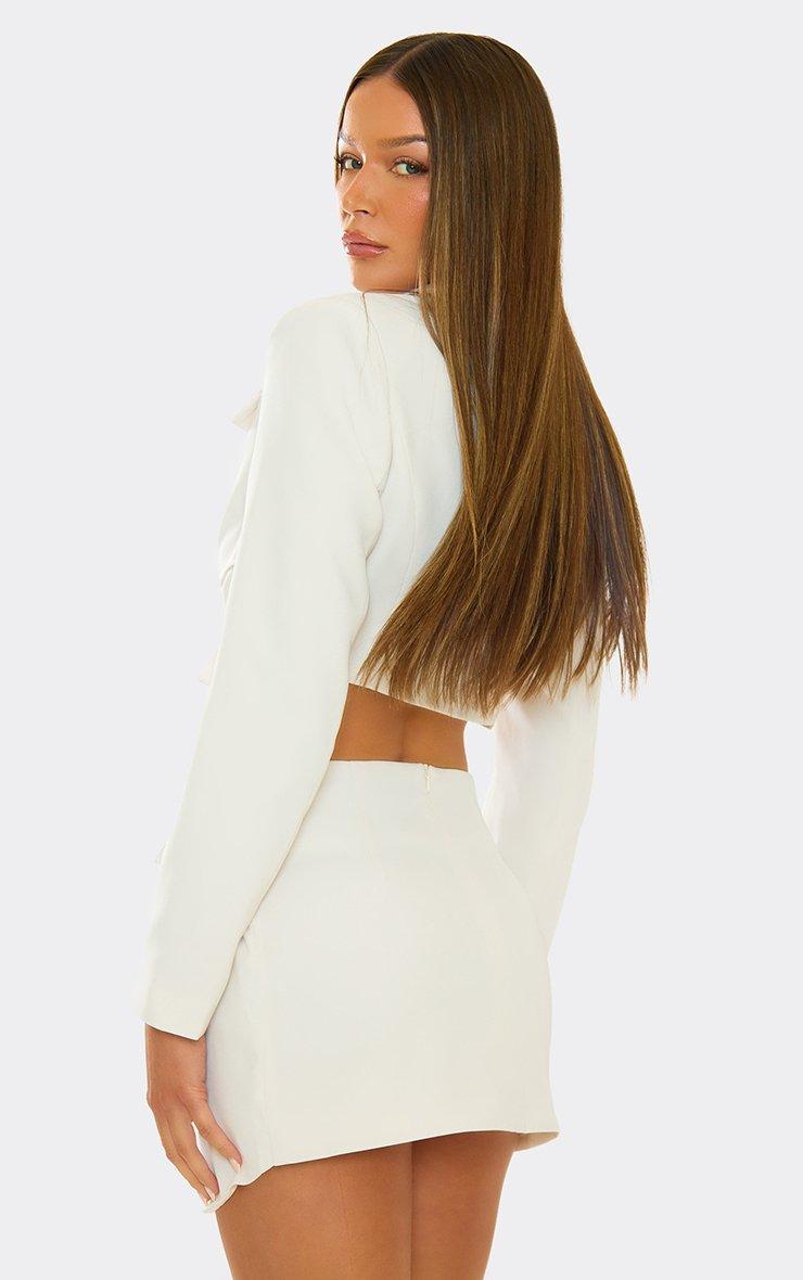 low waist wrap over belted detail mini skirt in cream