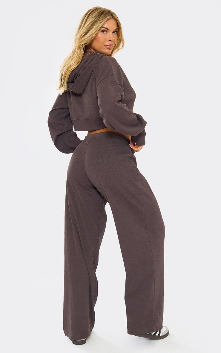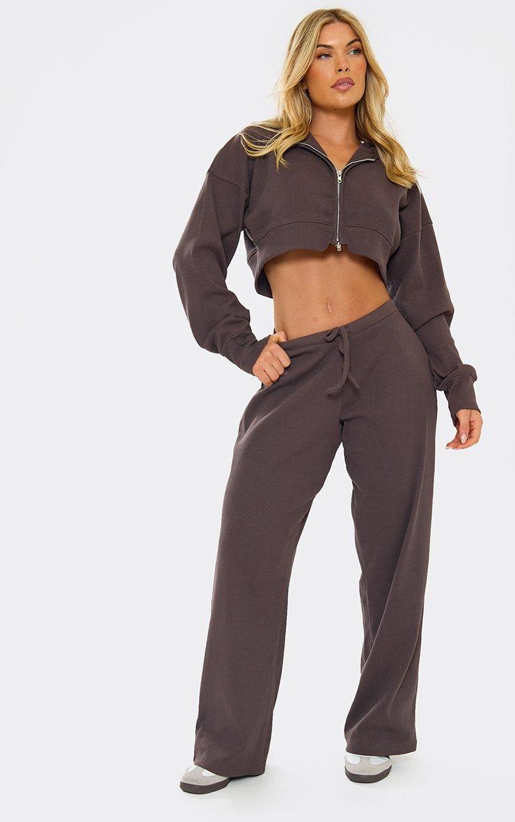 Elastic Waist Straight Leg Joggers In Chocolate Brown Rib