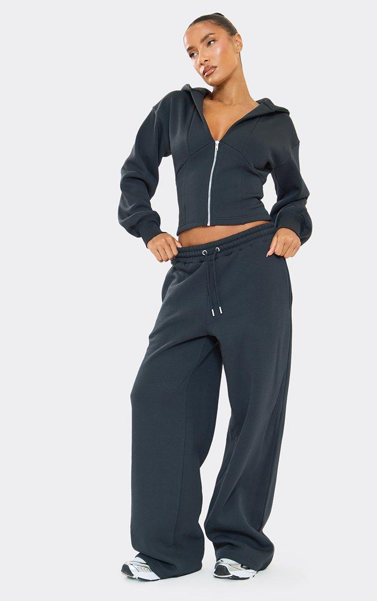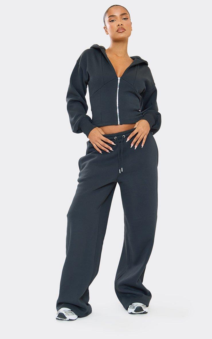 Drawstring Waist Wide Leg Joggers In Dark Navy