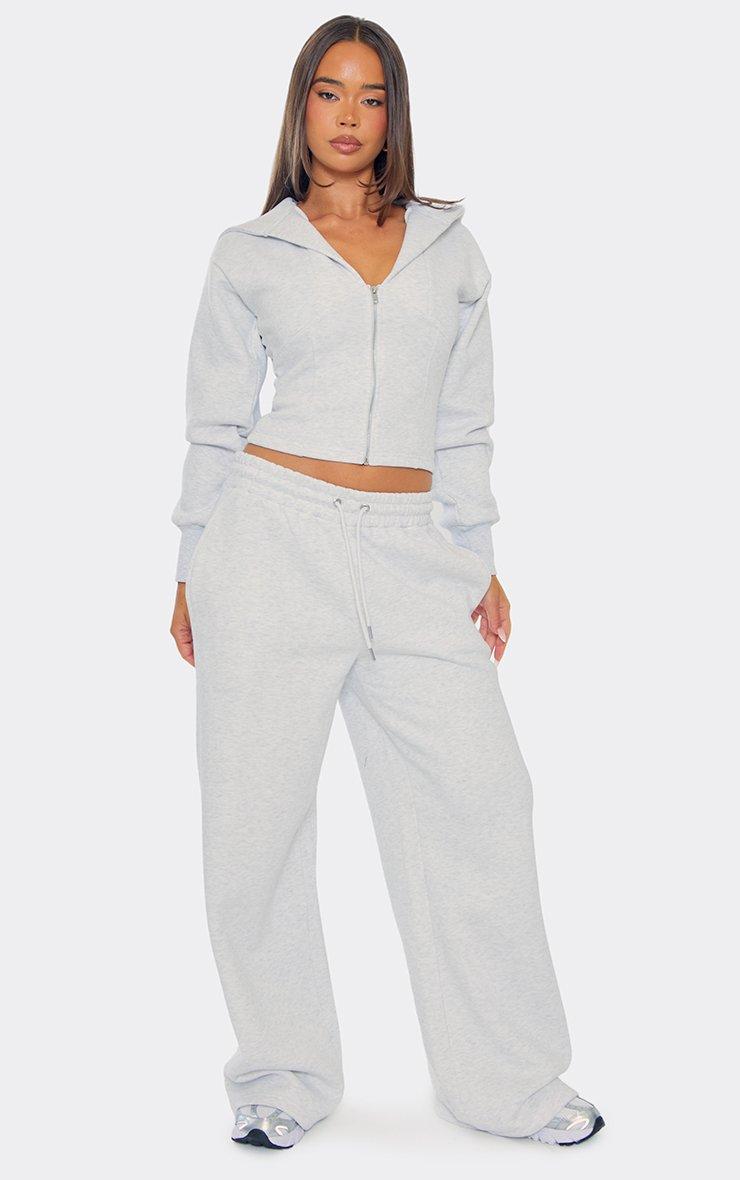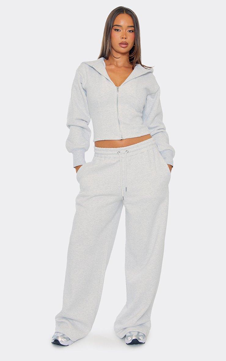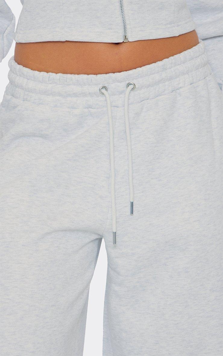 Drawstring Wide Leg Joggers In Light Grey Marl
