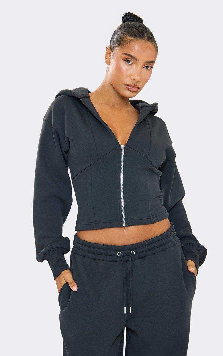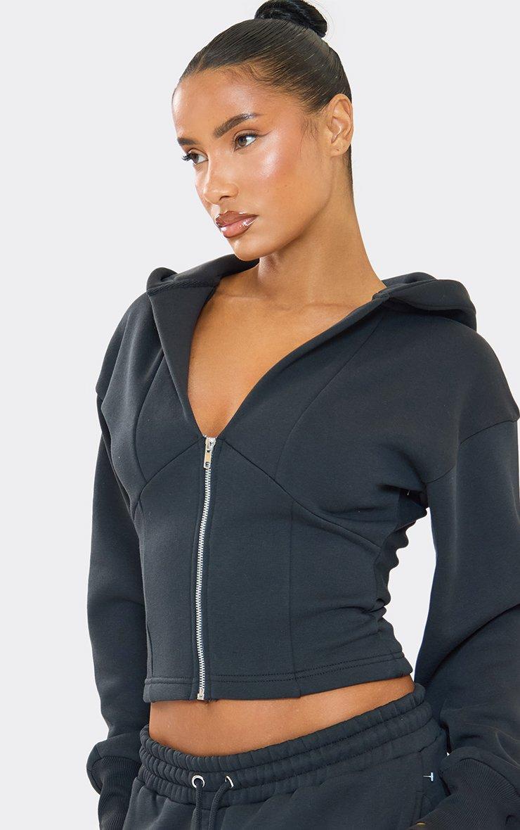 Swirl Graphic Detail Cropped Hoodie In Navy Blue