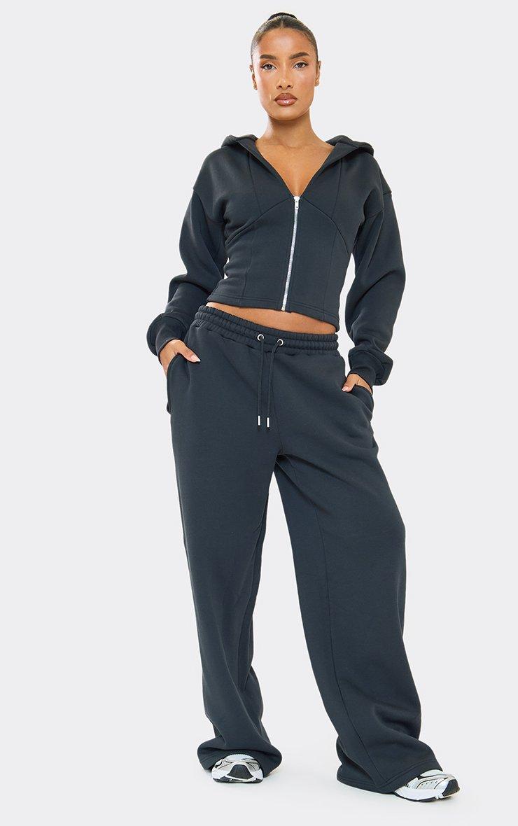 Mid Rise Pocket Detail Wide Leg Joggers In Steel Blue