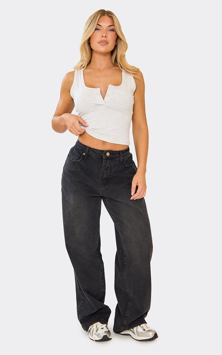 One Shoulder Ruched Trim Detail Top In Charcoal Grey