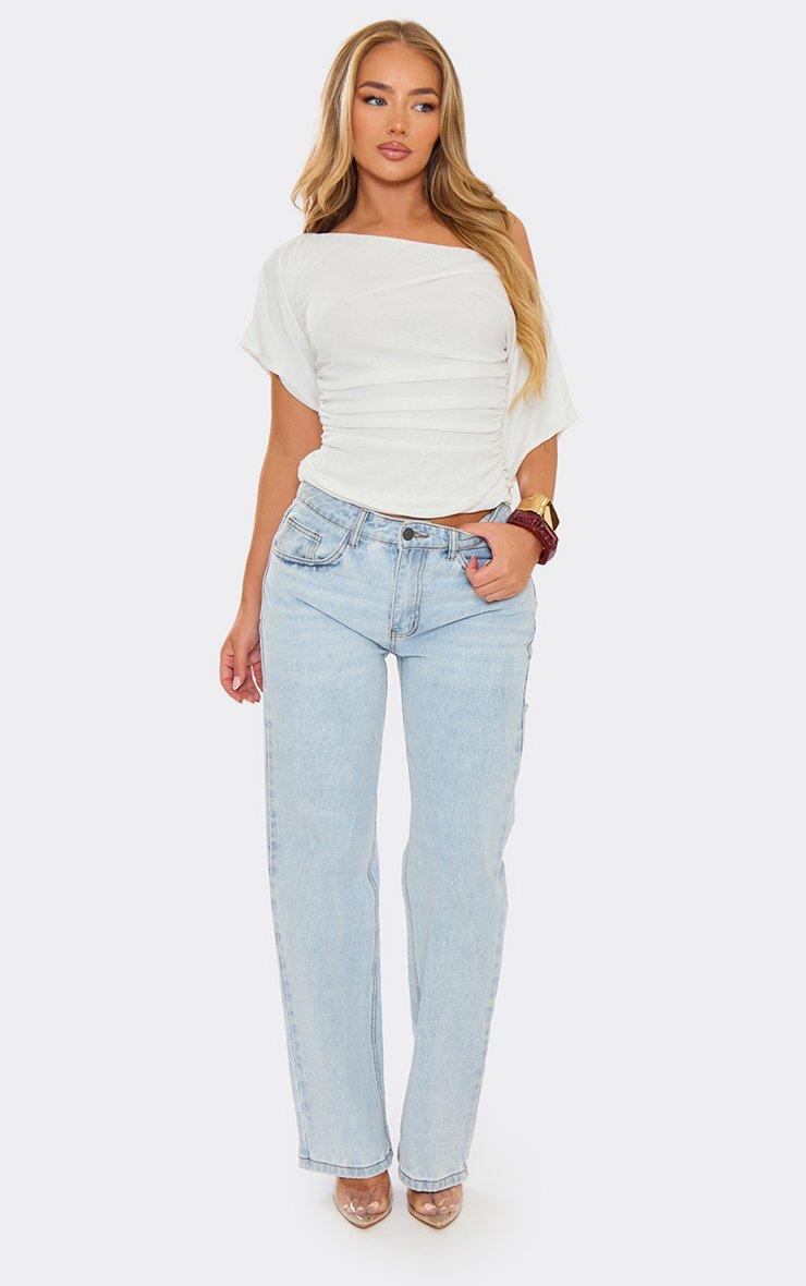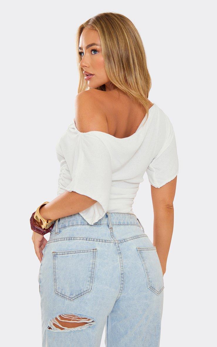 Slash Neck Ruched Detail Top In White