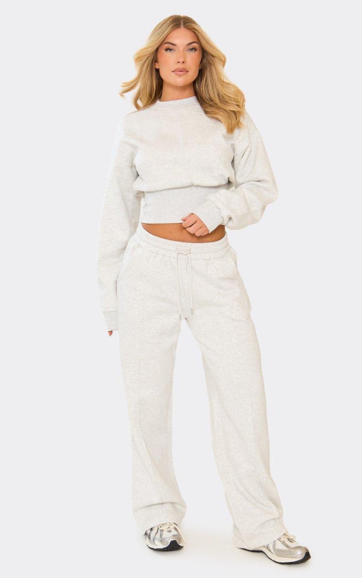 Low Waist Wide Leg Joggers In Light Grey Marl