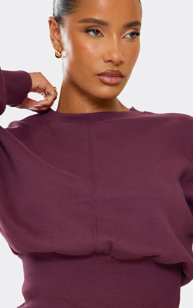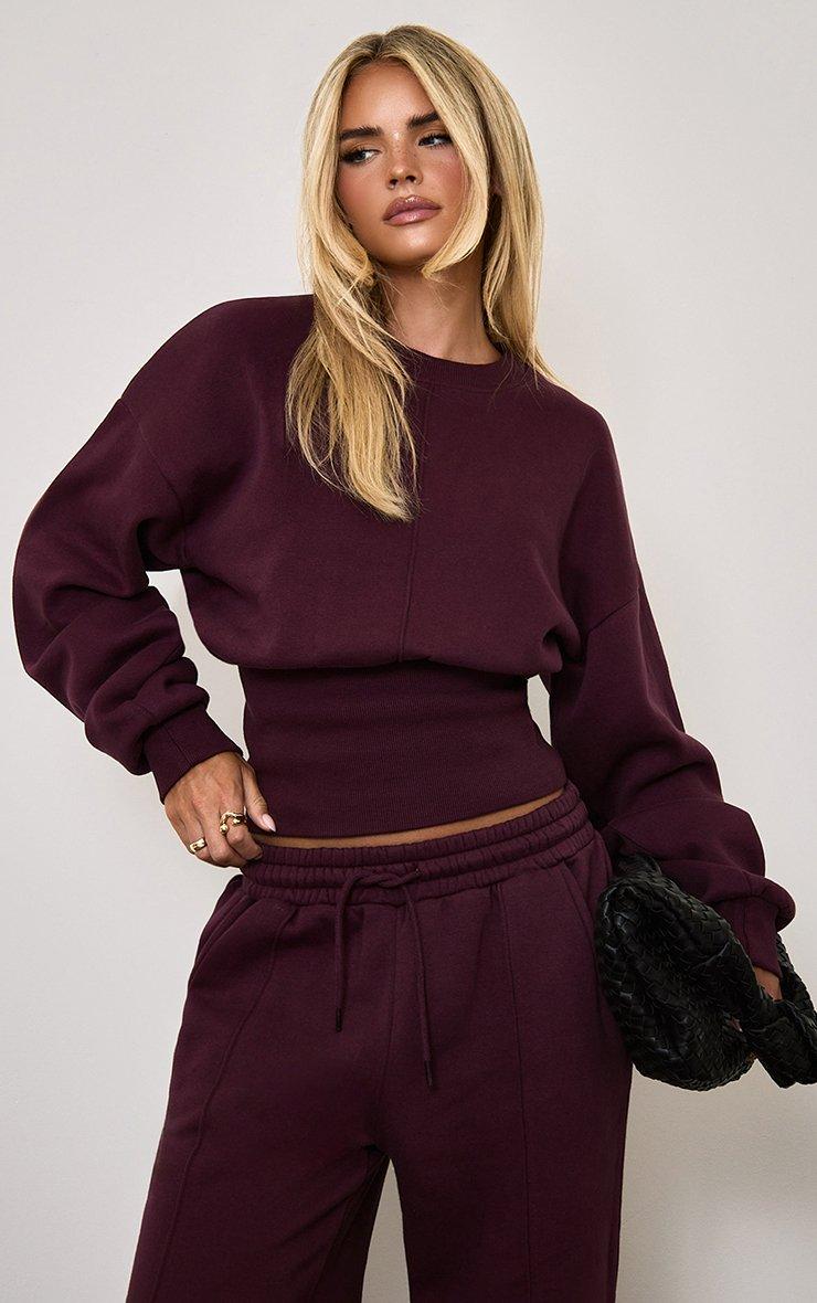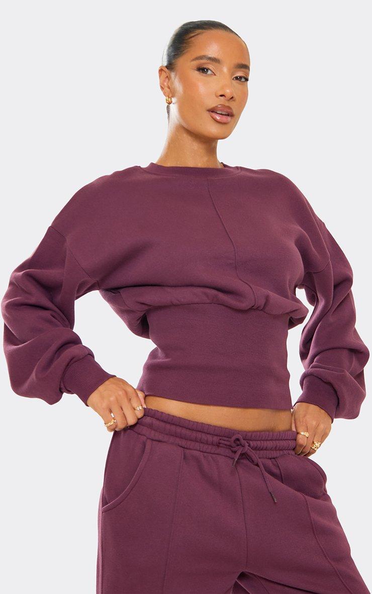 Long Sleeve Cinched Waist Seam Detail Sweatshirt In Plum