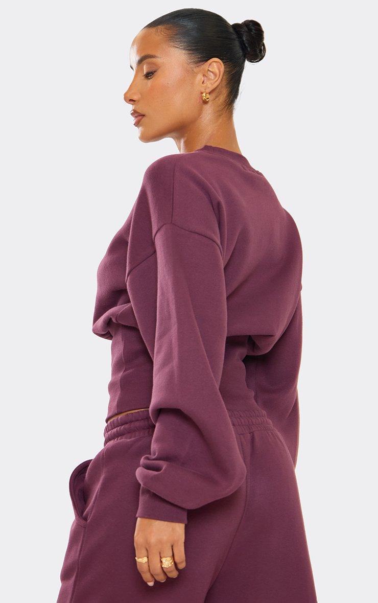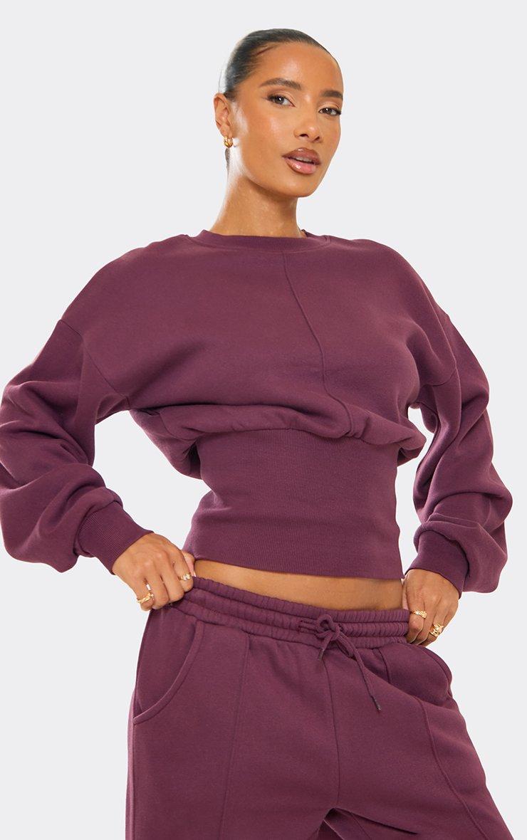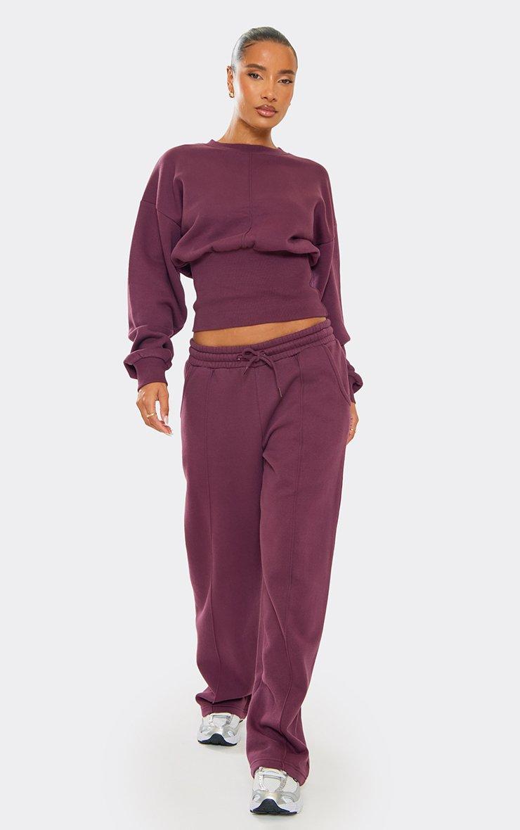Mid Rise Seam Detail Wide Leg Joggers In Plum