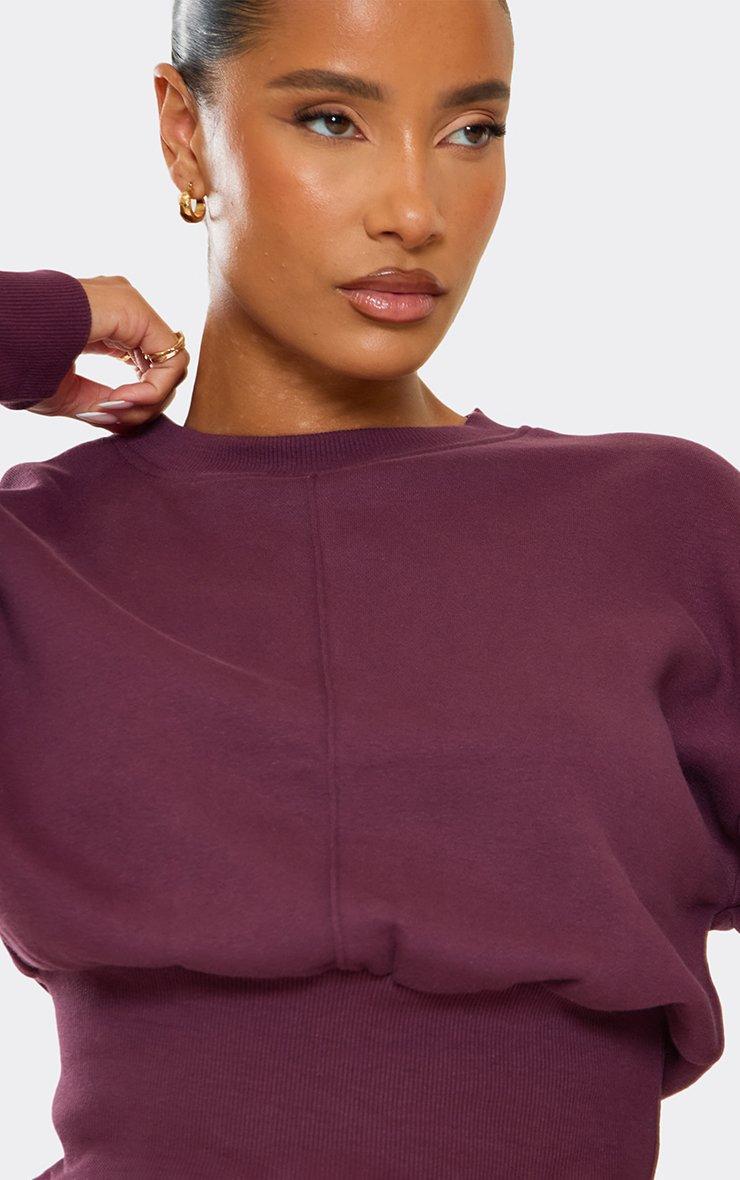 Long Sleeve Button Up Detail Oversized Jumper In Plum