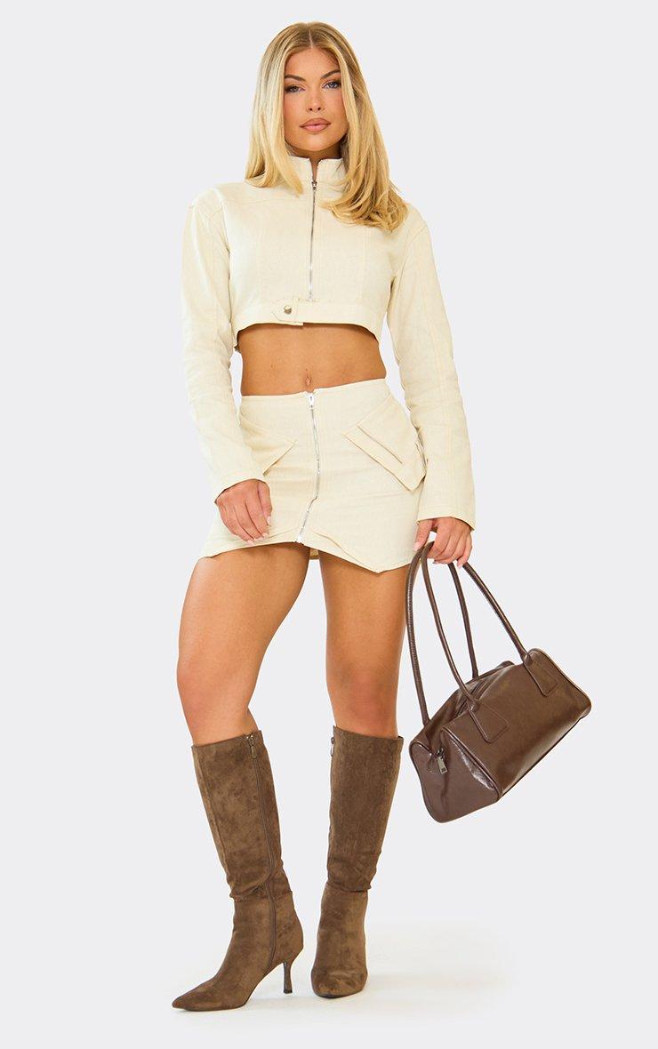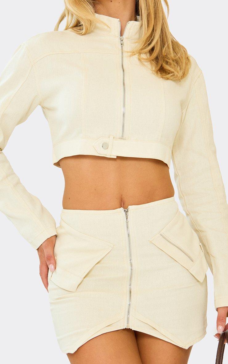 Cargo Pocket Front Oversized Jacket In Stone Twill