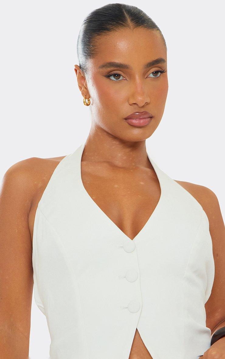 Sleeveless Chunky Button Detail Cropped Waistcoat In White