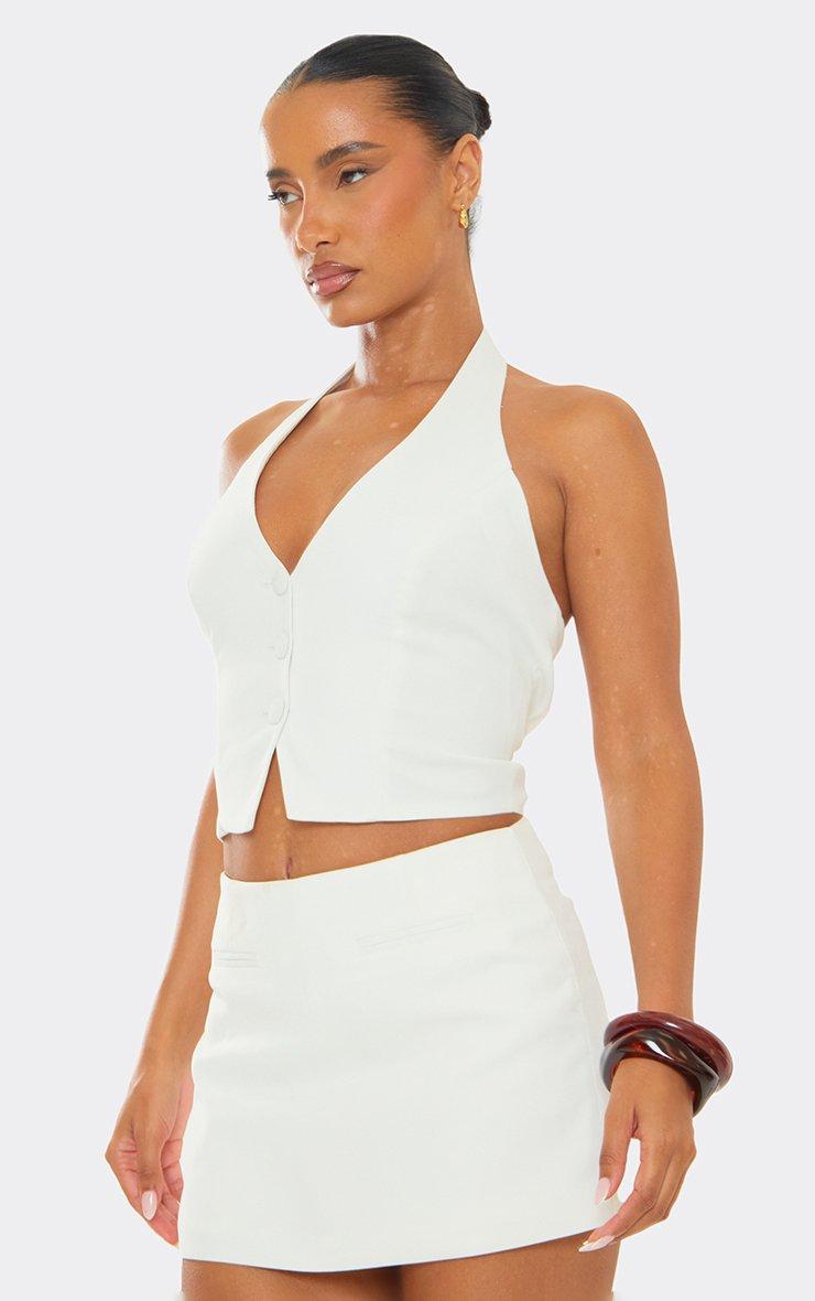 Sleeveless Contrast Seam Detail Cropped Waistcoat In White