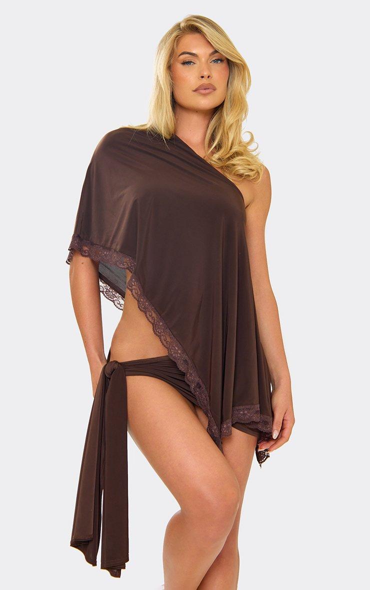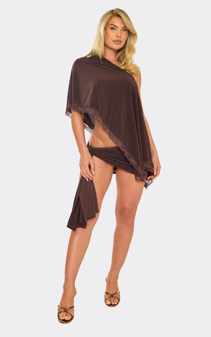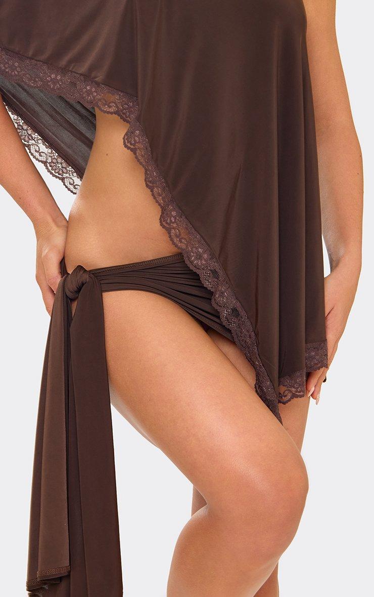 Tie Side Lace Trim Mini Skirt In Brown Slinky