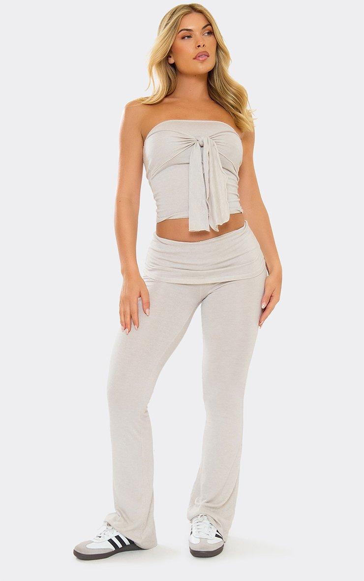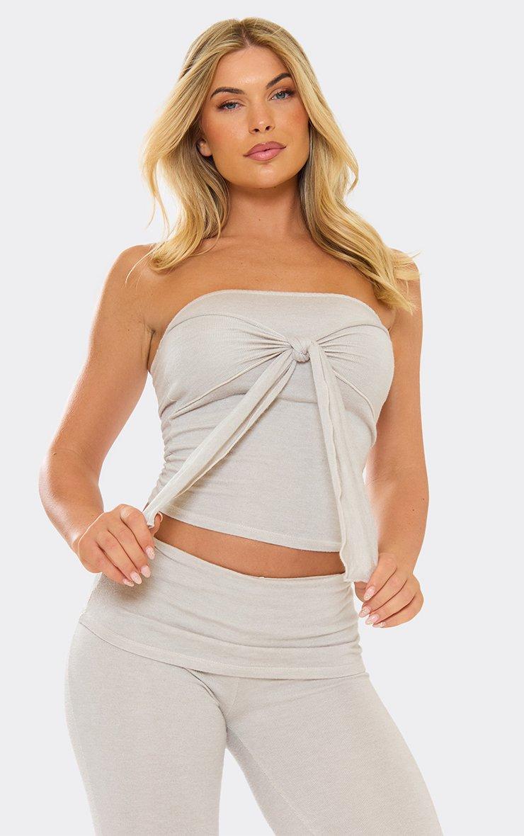 Bandeau Tie Front Detail Top In Stone Soft Knit