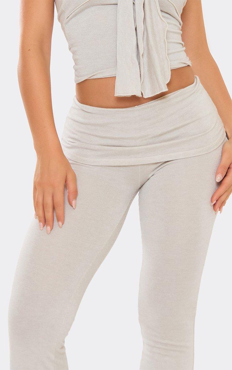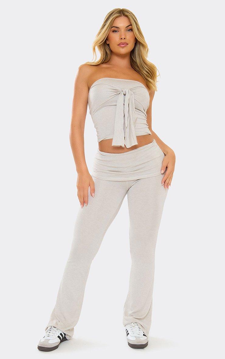 Mid Rise Pocket Detail Wide Leg Joggers In Light Grey Marl