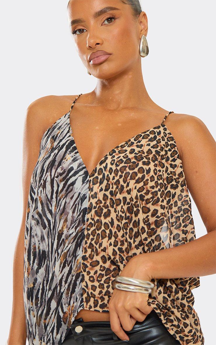 Strappy V Neck Cami Top In Multi Animal Print