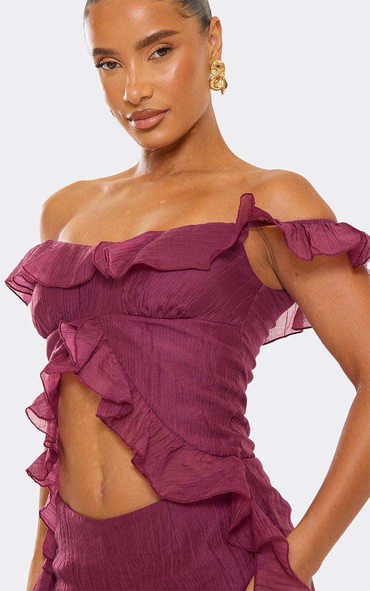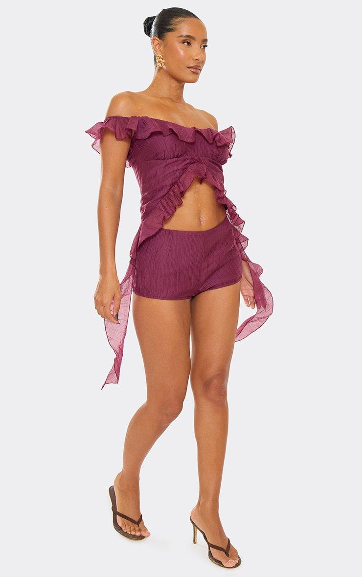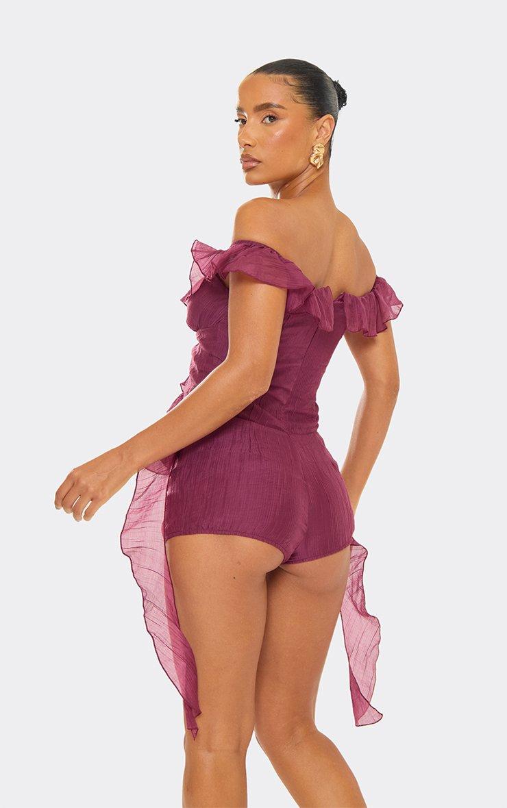 Bardot Frill Edge Cut Out Detail Playsuit In Plum Textured