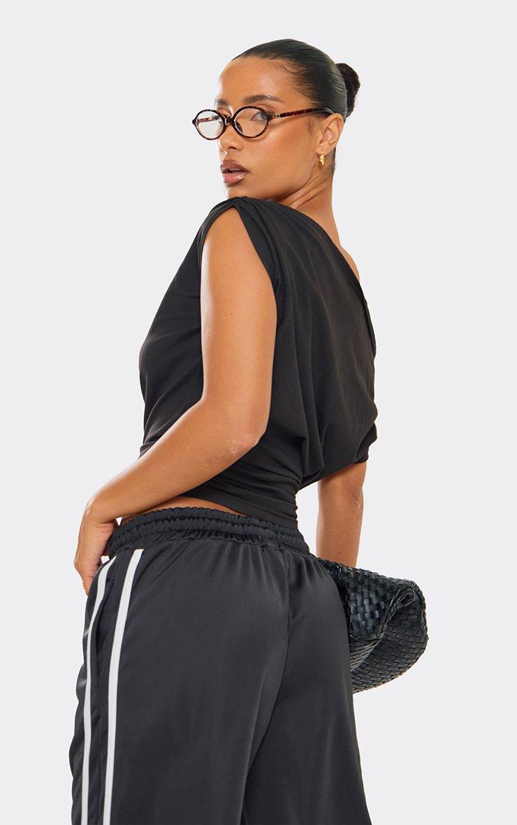 Long Sleeve Cowl Back Detail Top In Black Slinky
