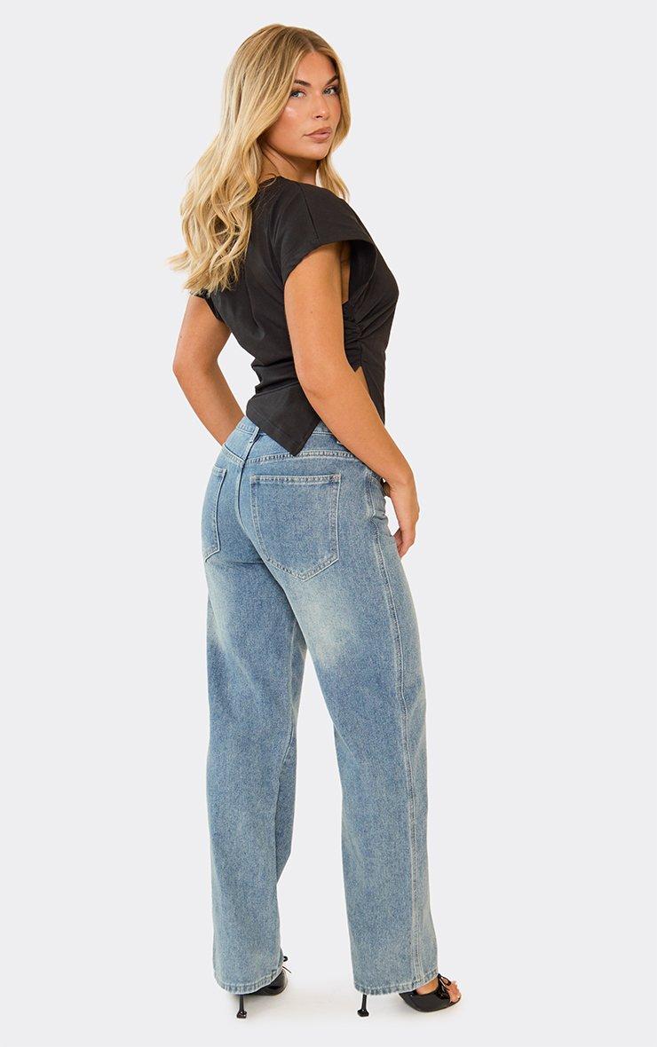 Short Sleeve Cinched Waist Fitted T-Shirt In Black