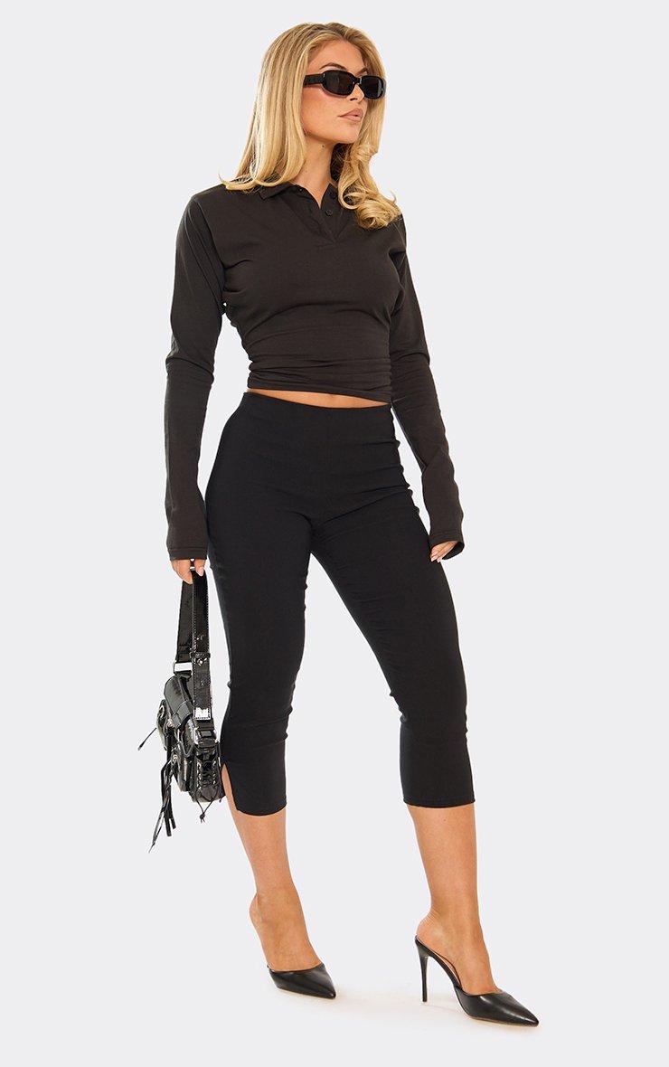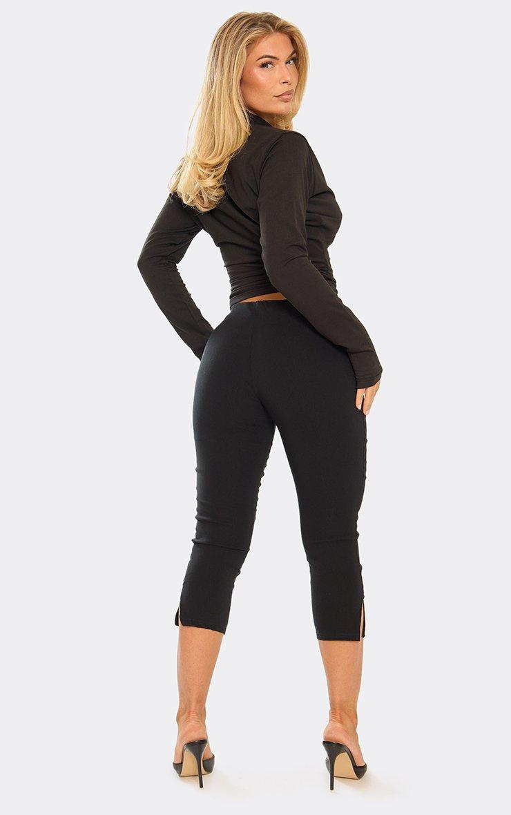 Fold Over Ruched Detail Capri Trousers In Black