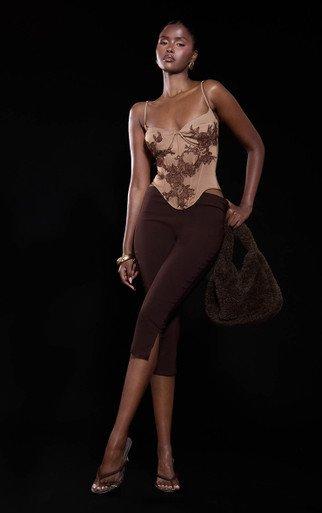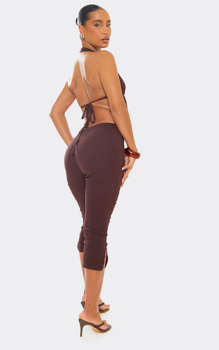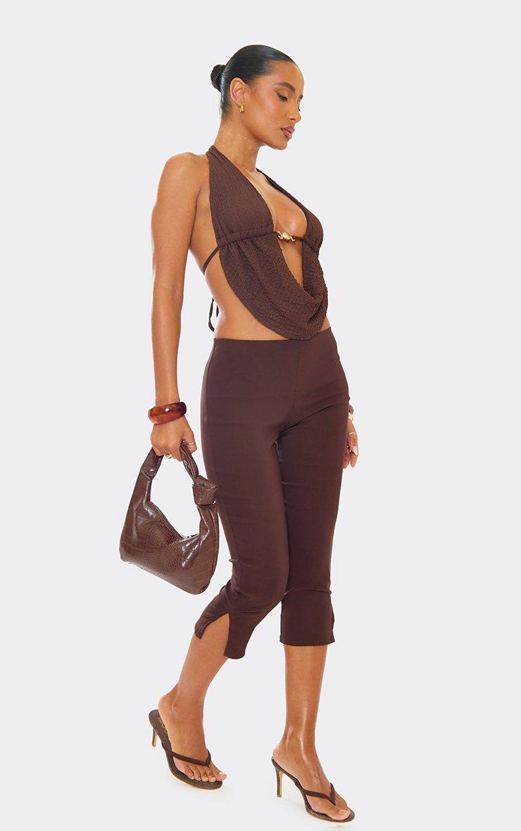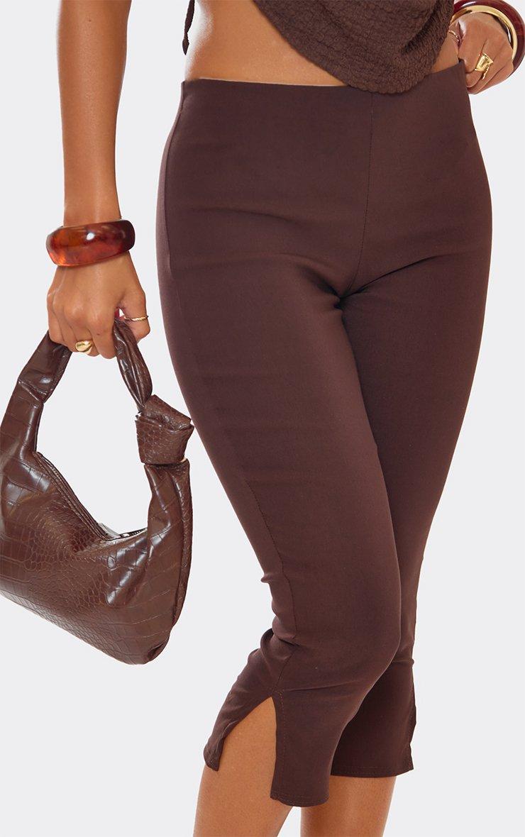 Mid Rise Capri Trousers In Brown Faux Suede