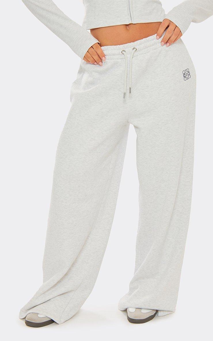 tie waist embroidered swirl logo wide leg joggers in grey marl