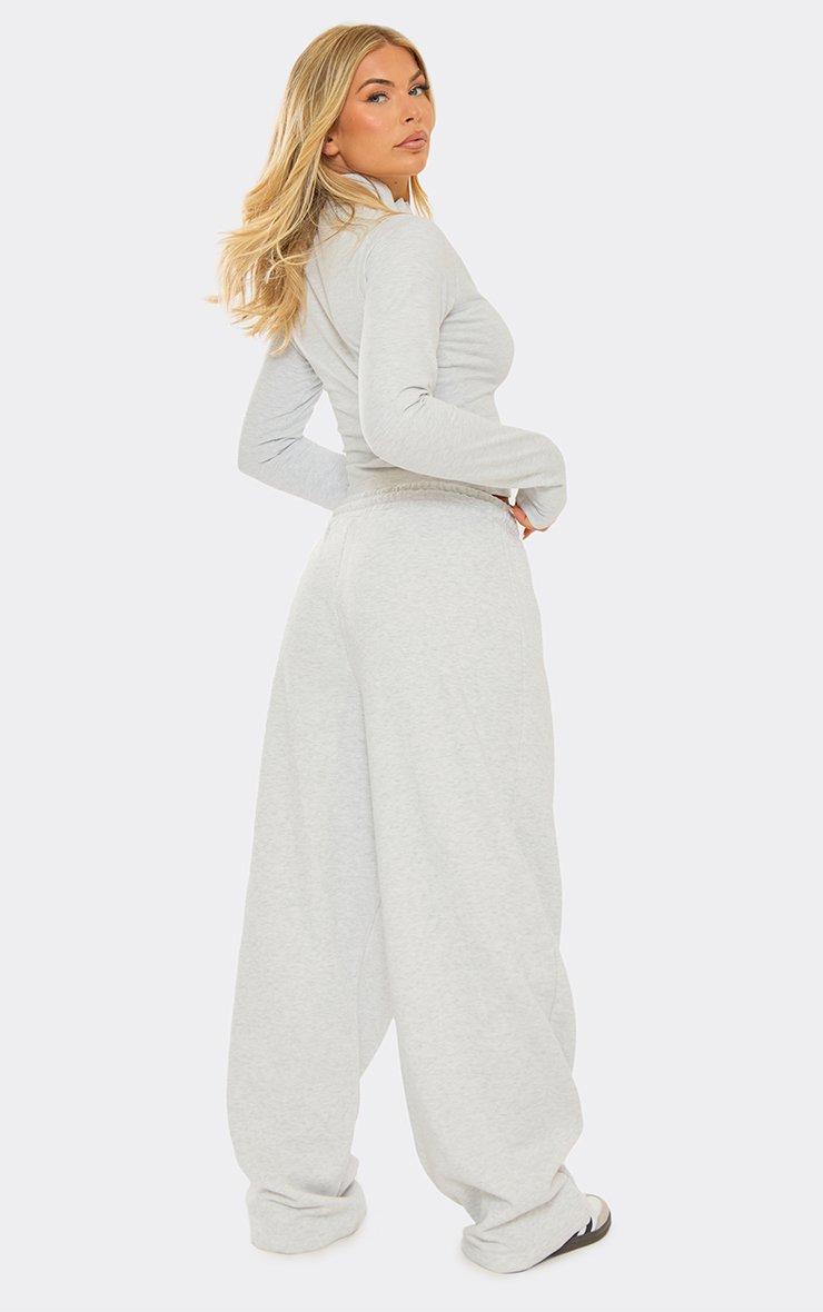Drawstring Low Rise Wide Leg Joggers In Light Grey Marl
