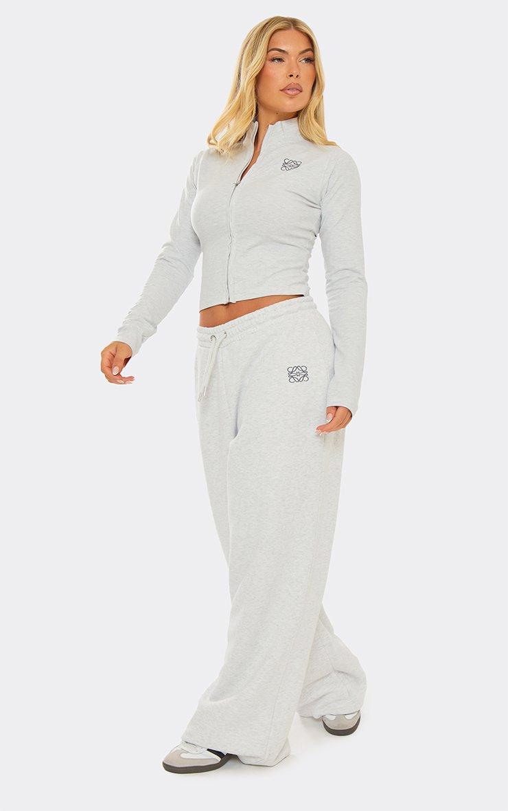 Tie Waist Embroidered Swirl Logo Wide Leg Joggers In Grey Marl