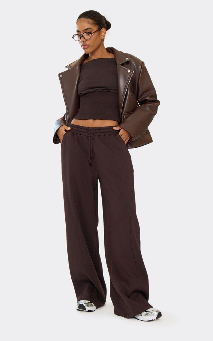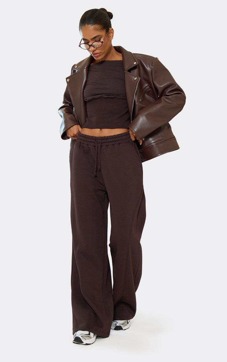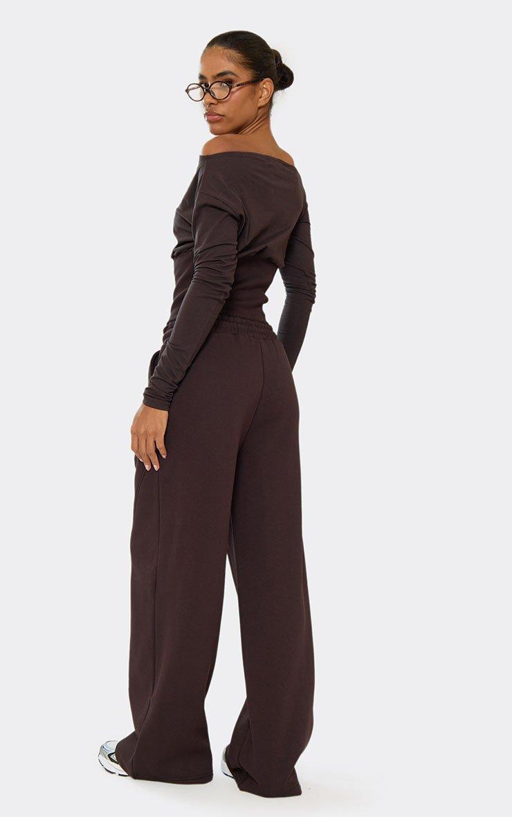 Elasticated Waist Wide Leg Joggers In Chocolate Brown