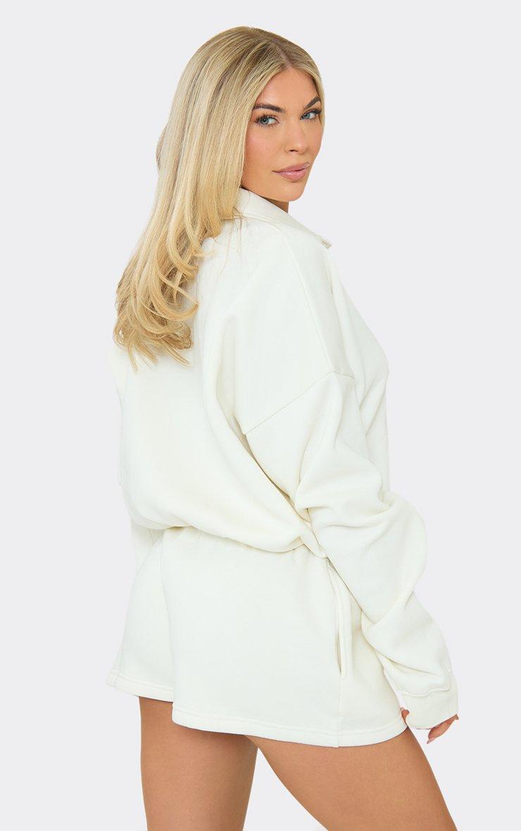Long Sleeve Collared Polo Sweatshirt In Cream