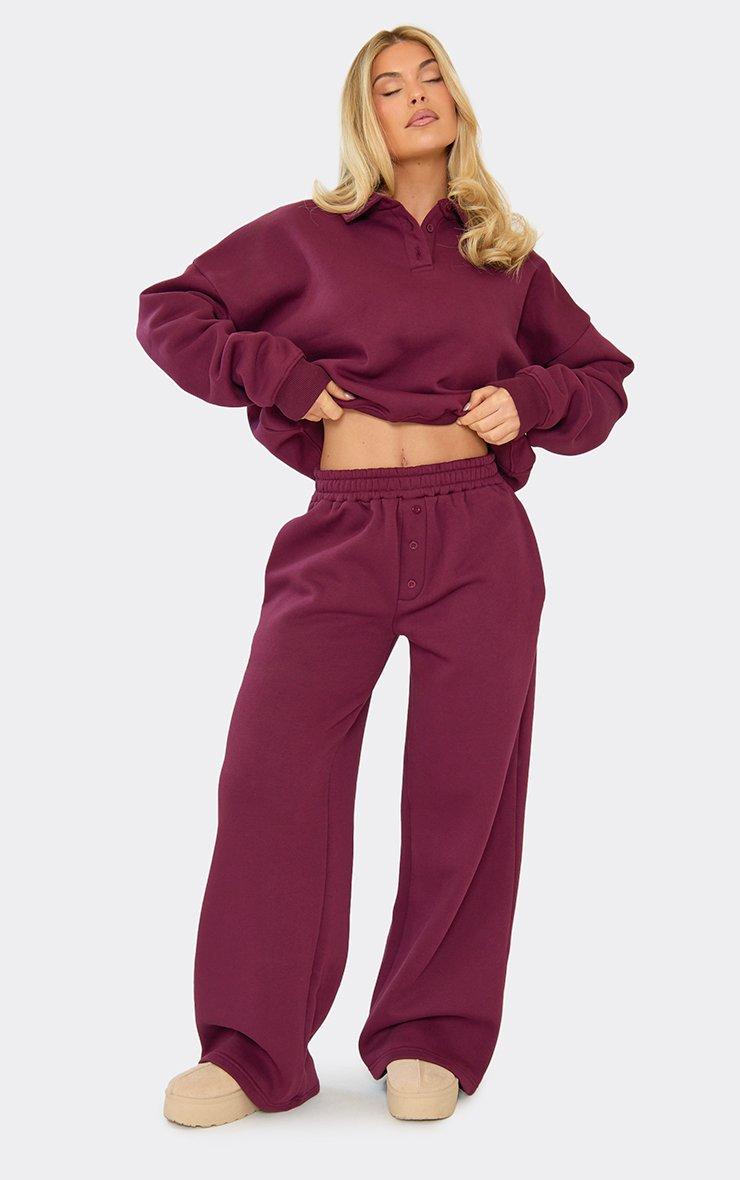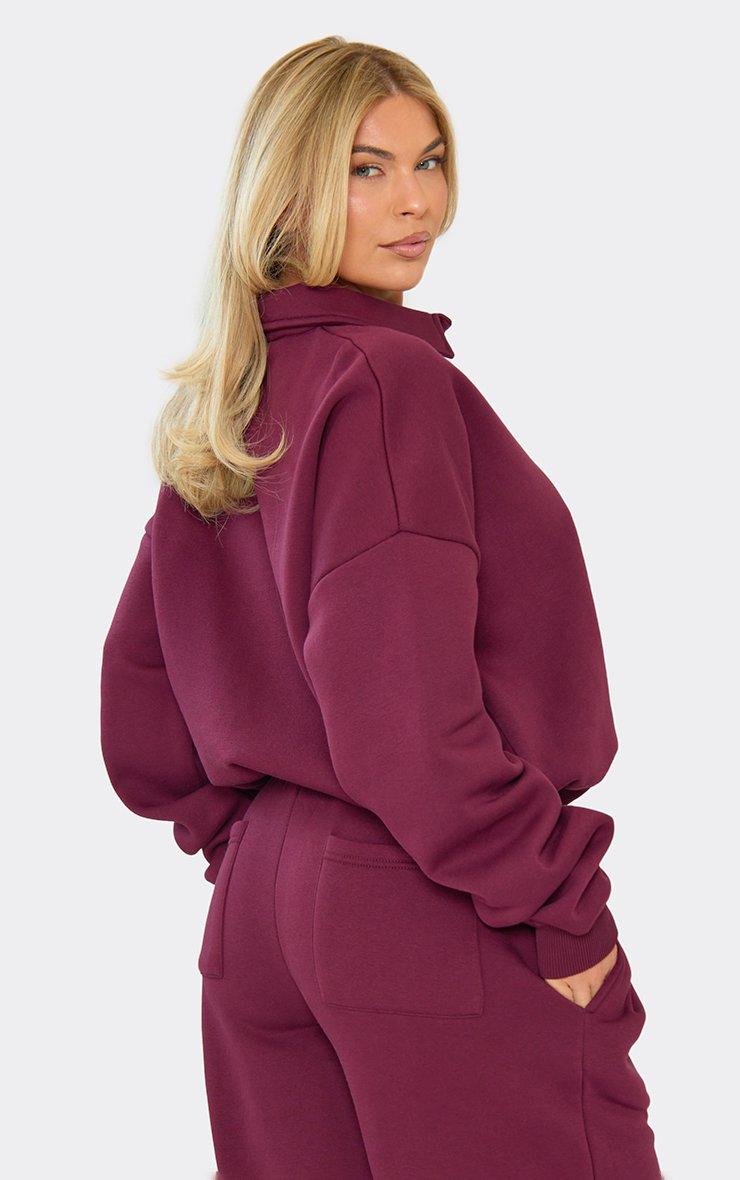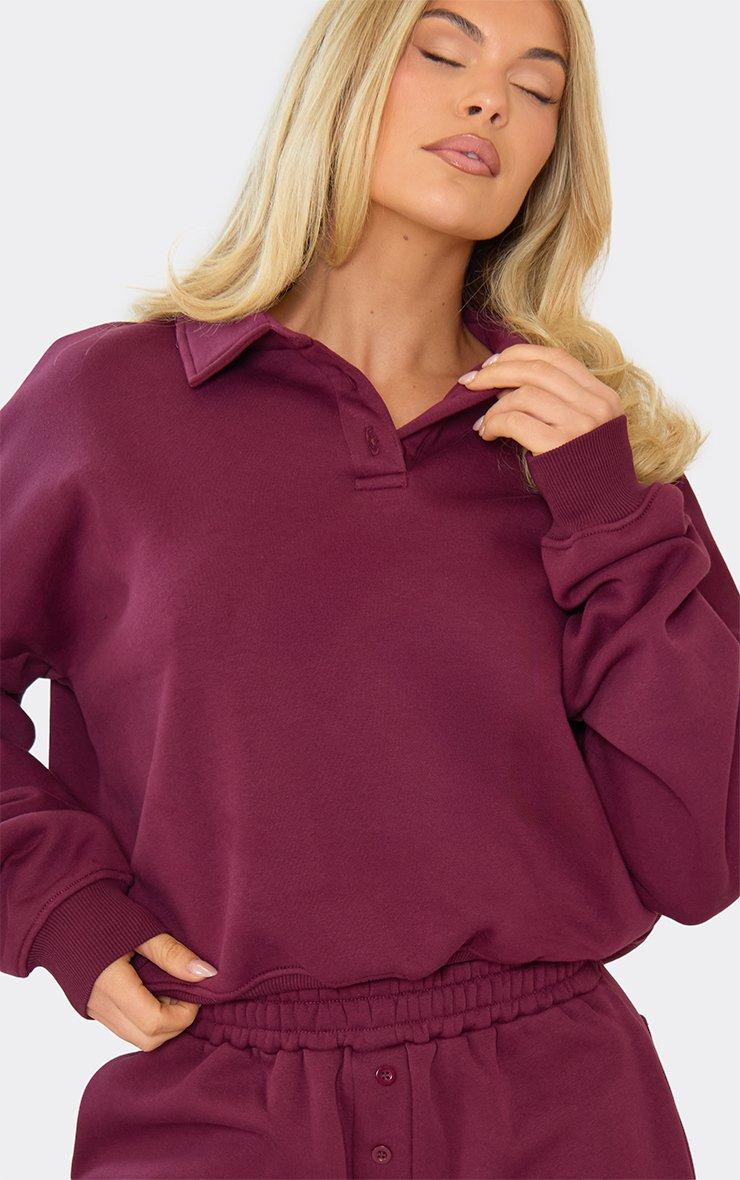 Long Sleeve Collared Polo Sweatshirt In Plum