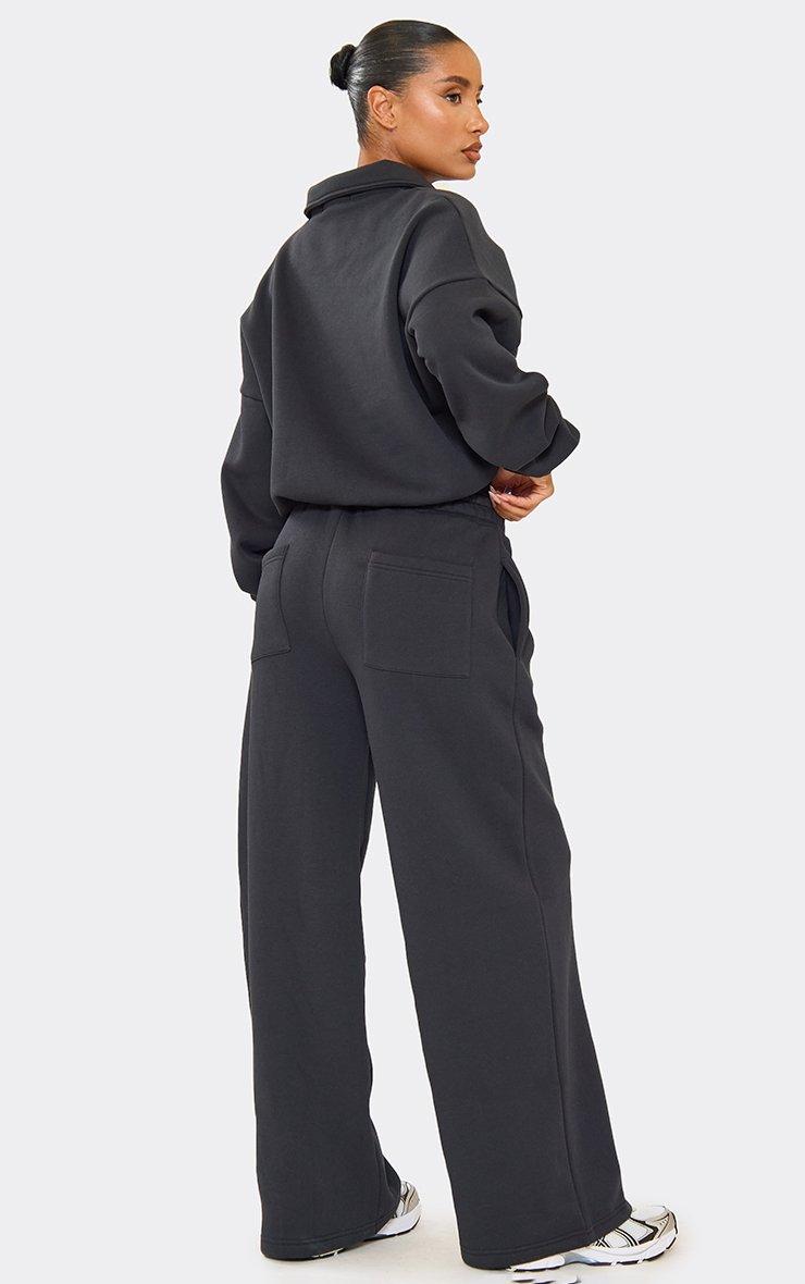 Mid Rise Pocket Detail Wide Leg Joggers In Light Grey Marl
