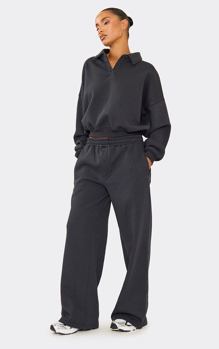 Low Rise Contrast Piping Detail Wide Leg Joggers In Dark Navy Blue