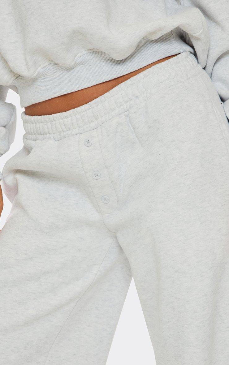 Mid Rise Contrast Piping Detail Wide Leg Joggers In Light Grey Marl