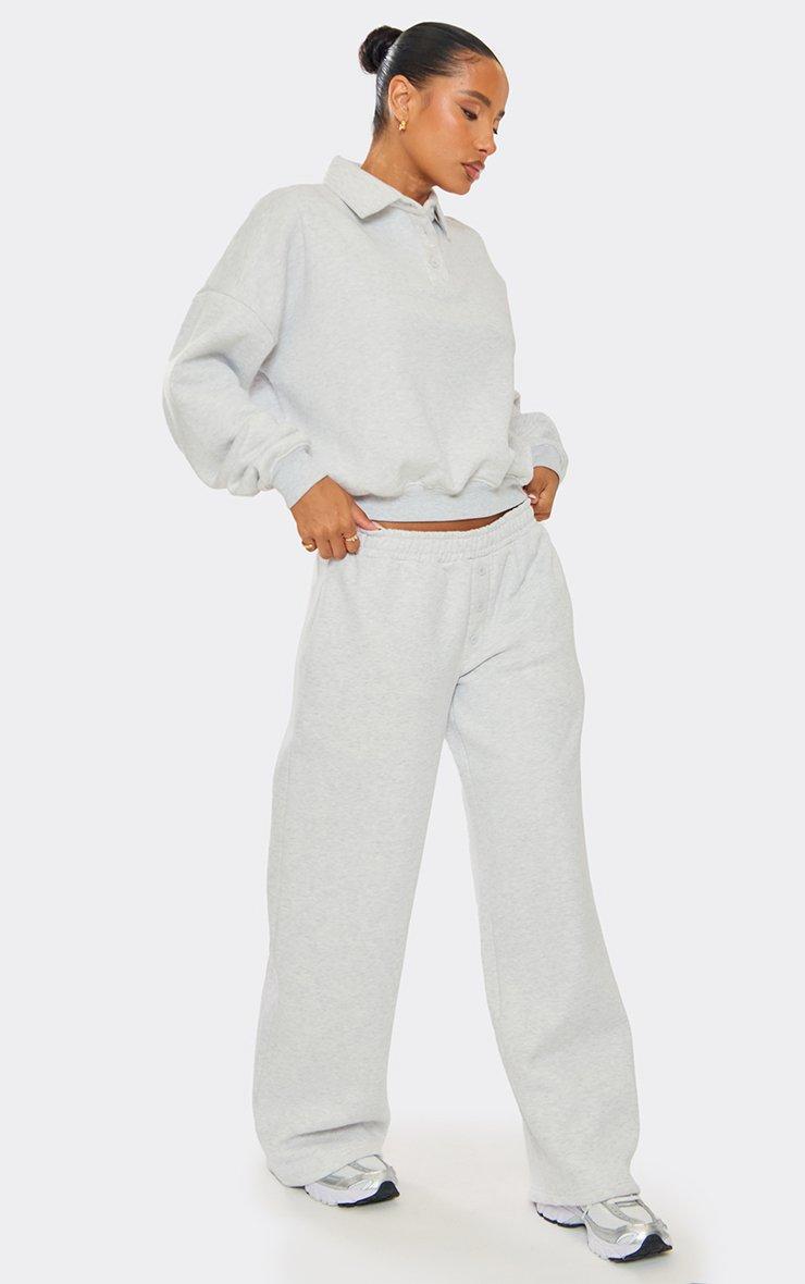 Drawstring Low Rise Wide Leg Joggers In Light Grey Marl