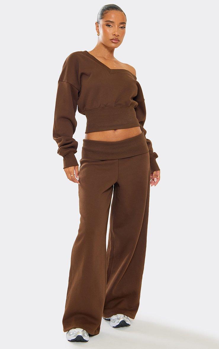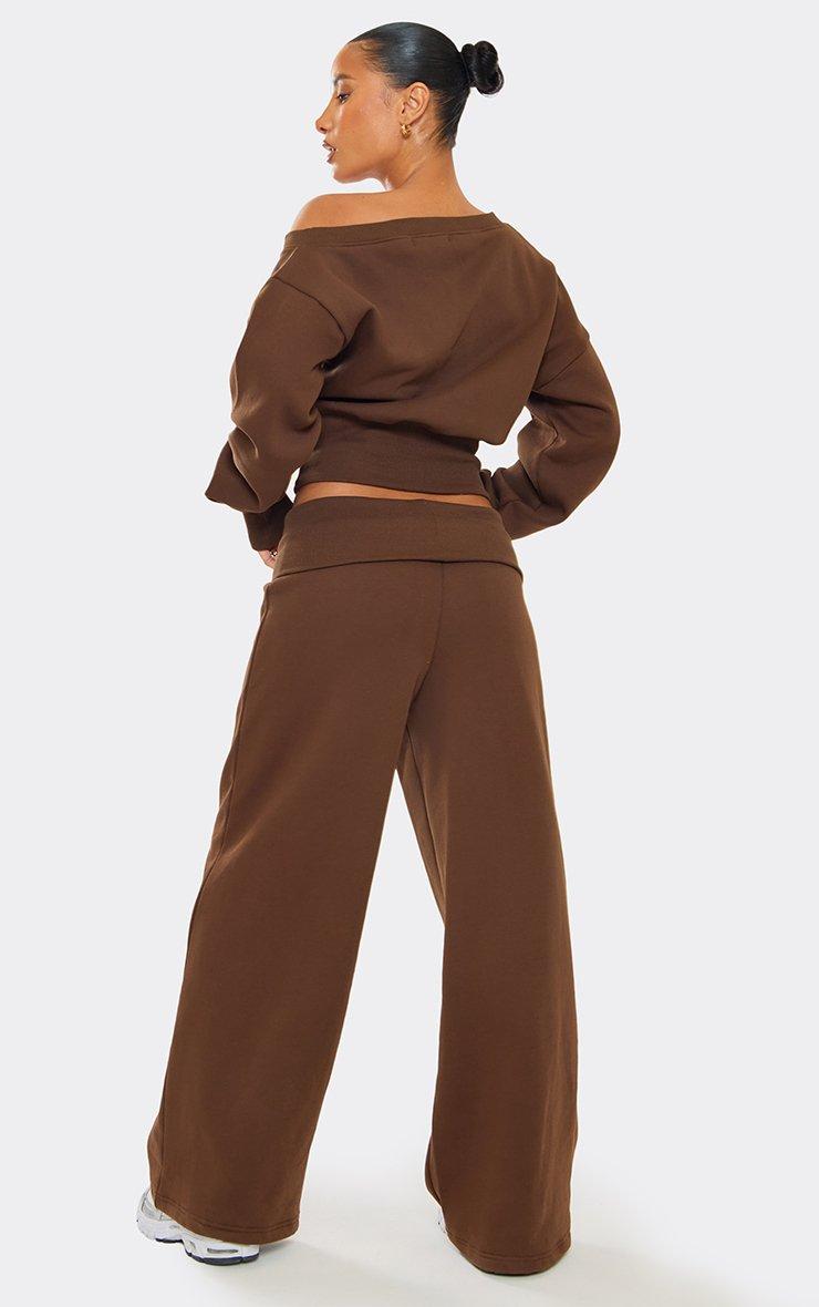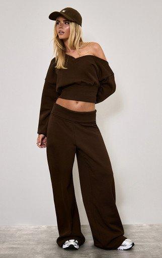 Elasticated Waist Wide Leg Joggers In Chocolate Brown