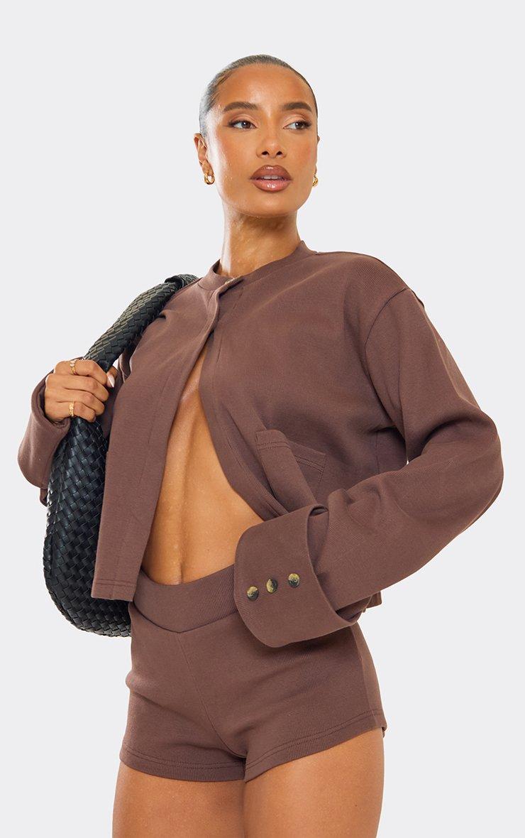 Low Rise Tailored Mini Shorts In Chocolate Brown