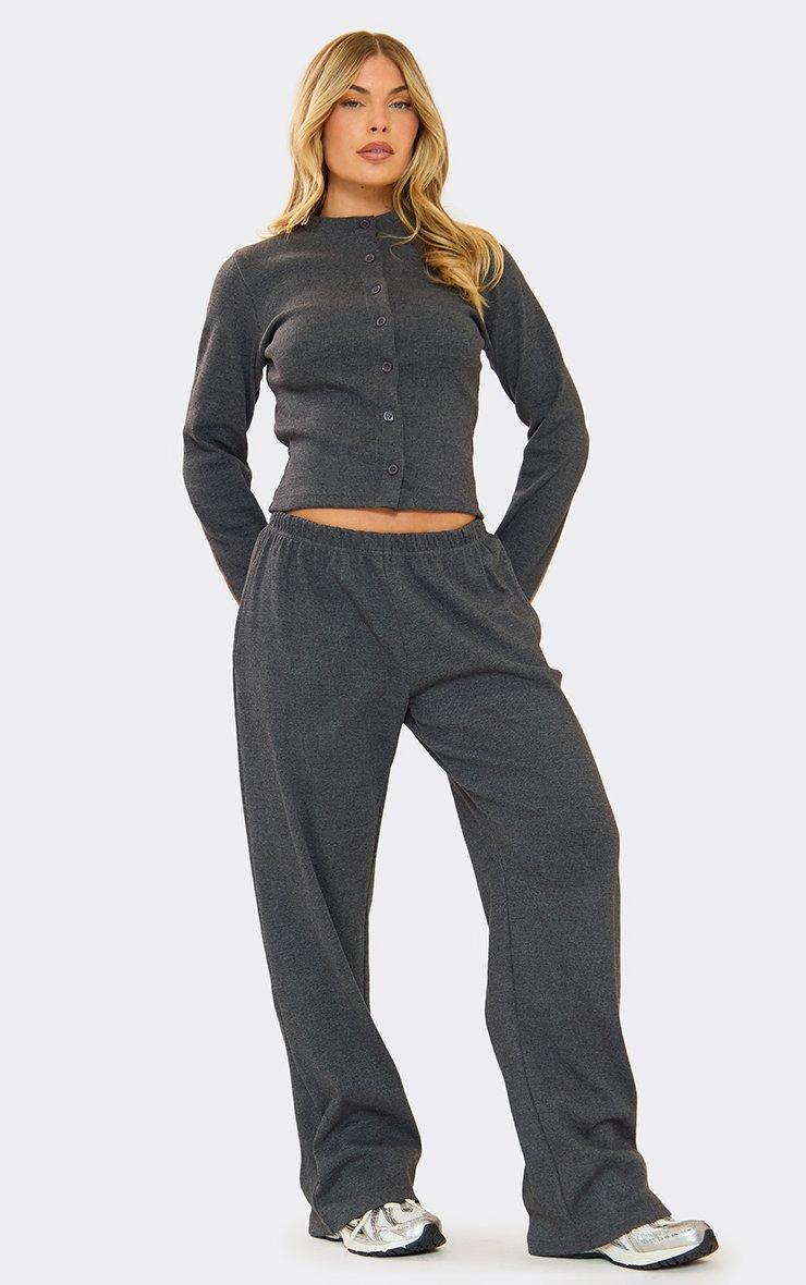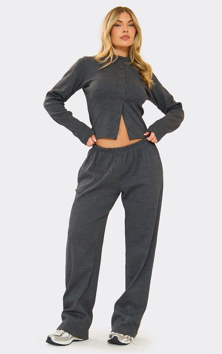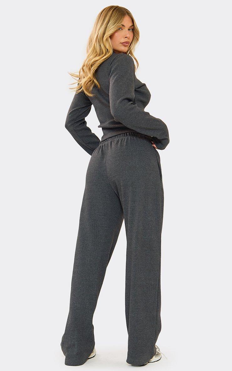 Mid Rise Wide Leg Trousers In Charcoal Grey Ribbed