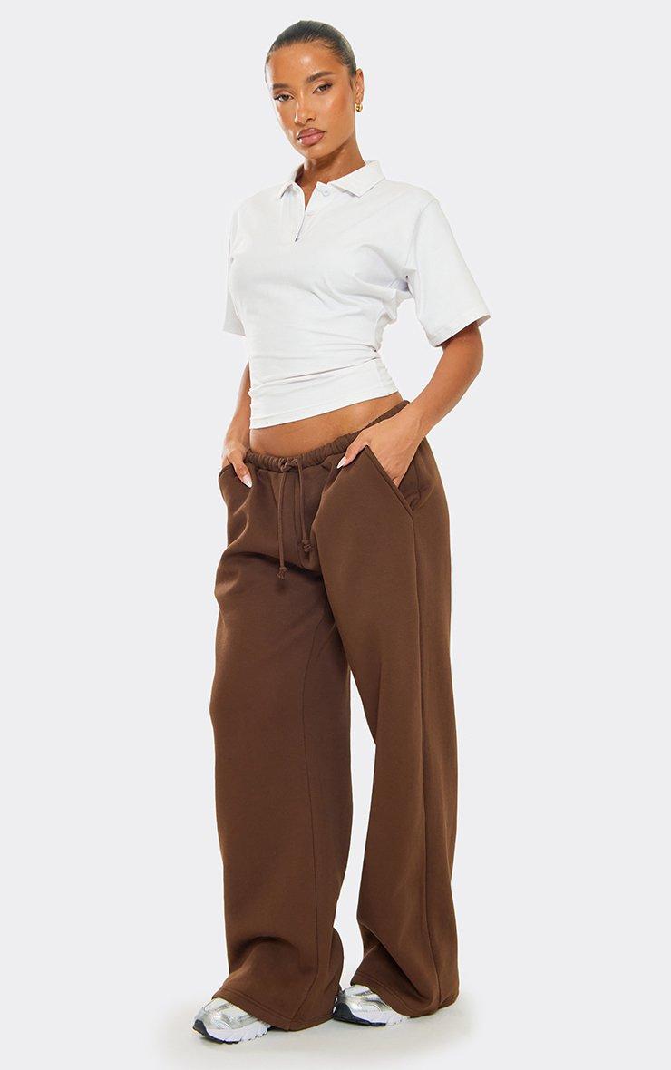 Low Rise Drawstring Parachute Trousers In Chocolate Brown