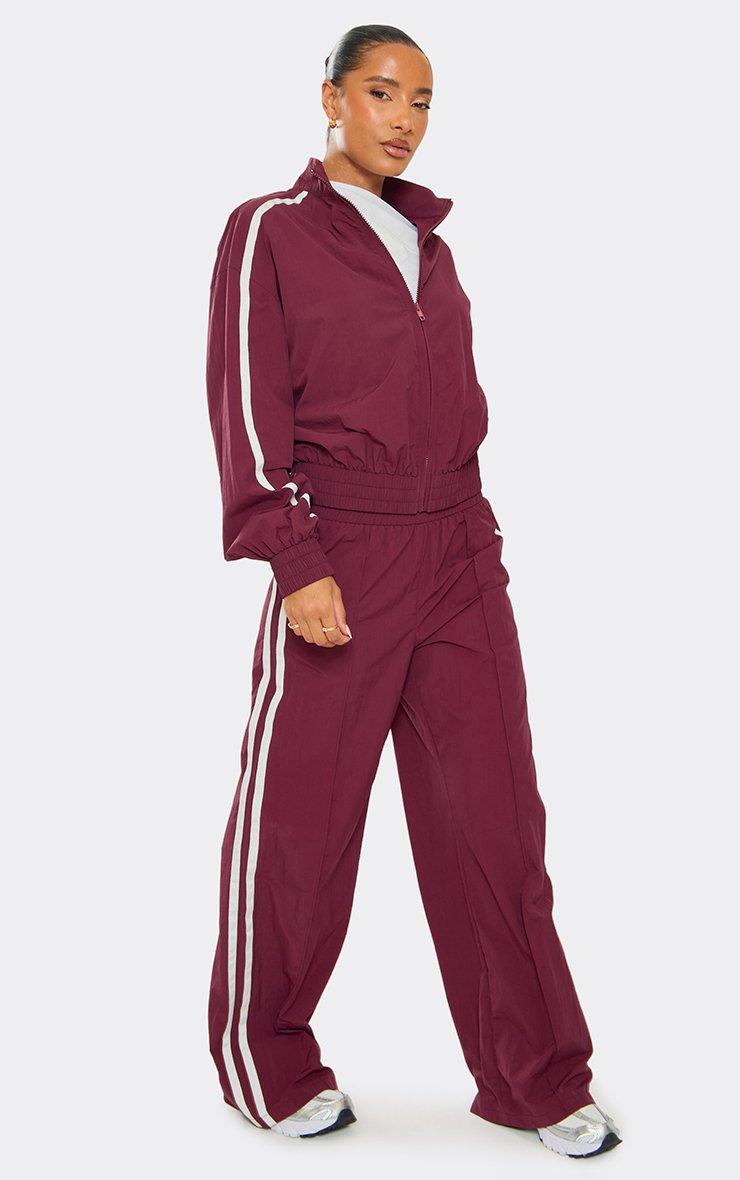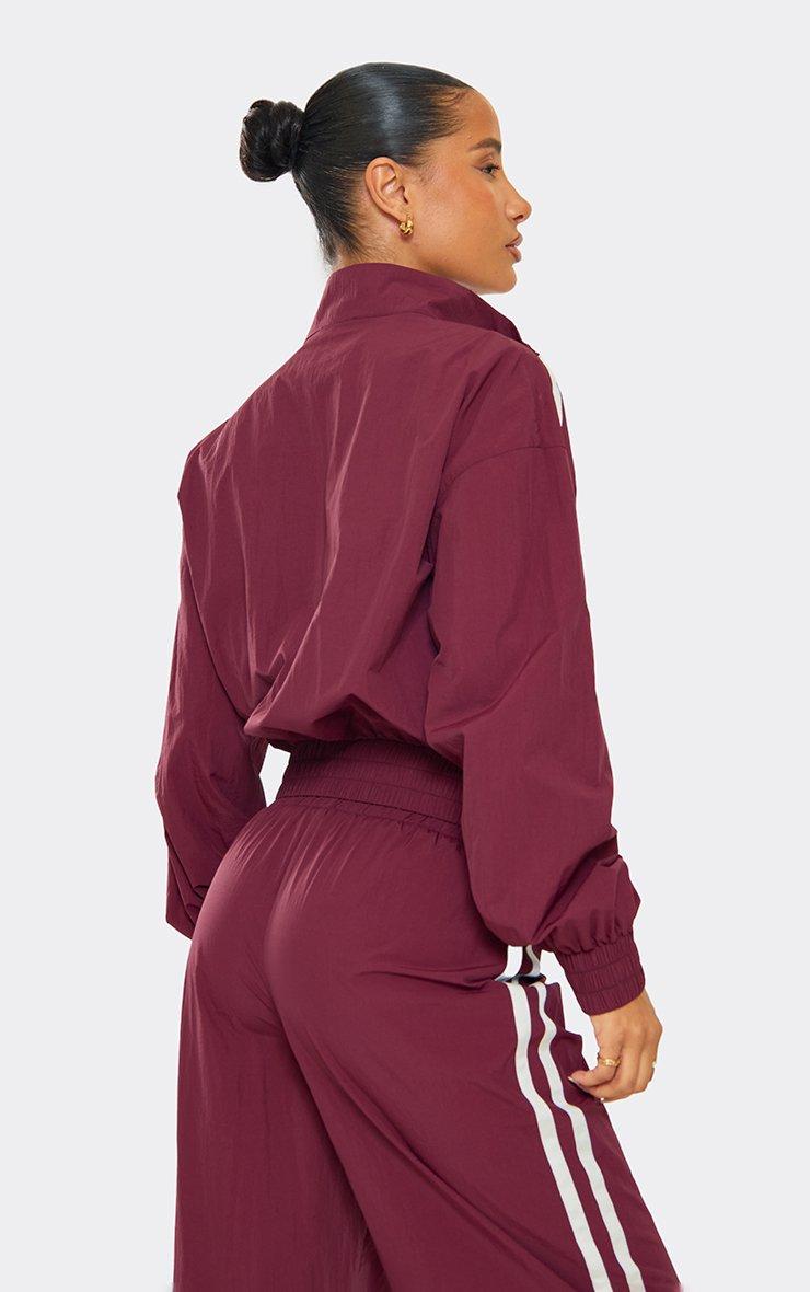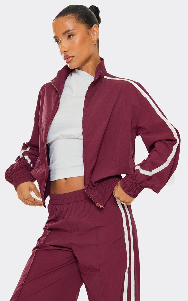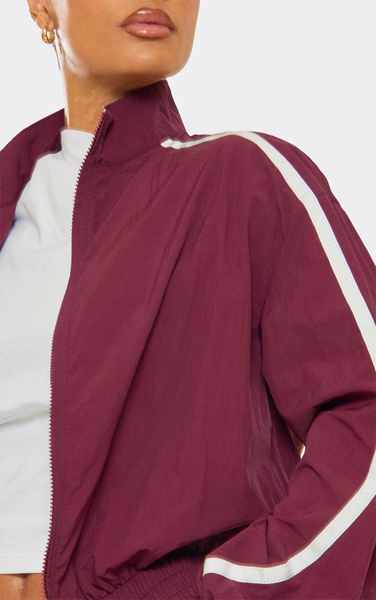 Long Sleeve Contrast Stripe Detail Zip Up Front Oversized Shell Jacket In Plum