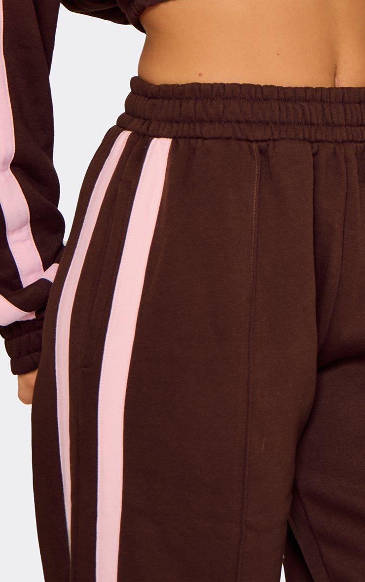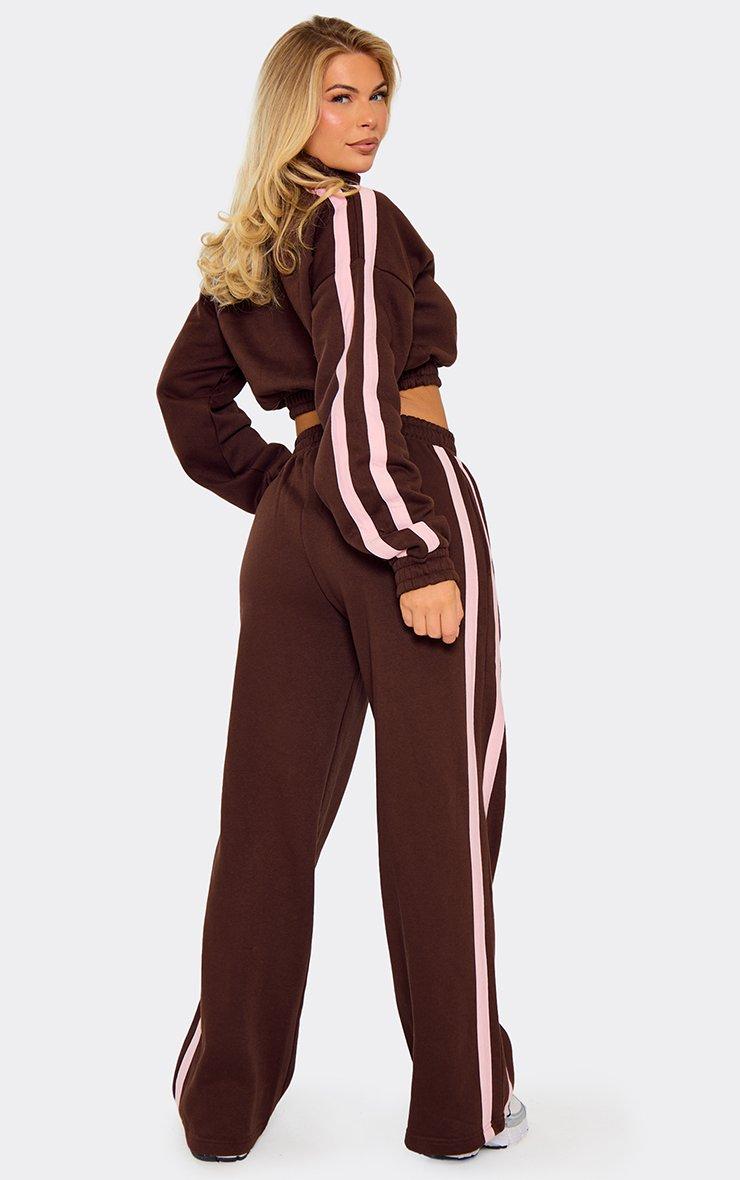 Mid Rise Contrast Stripe Detail Wide Leg Joggers In Chocolate Brown