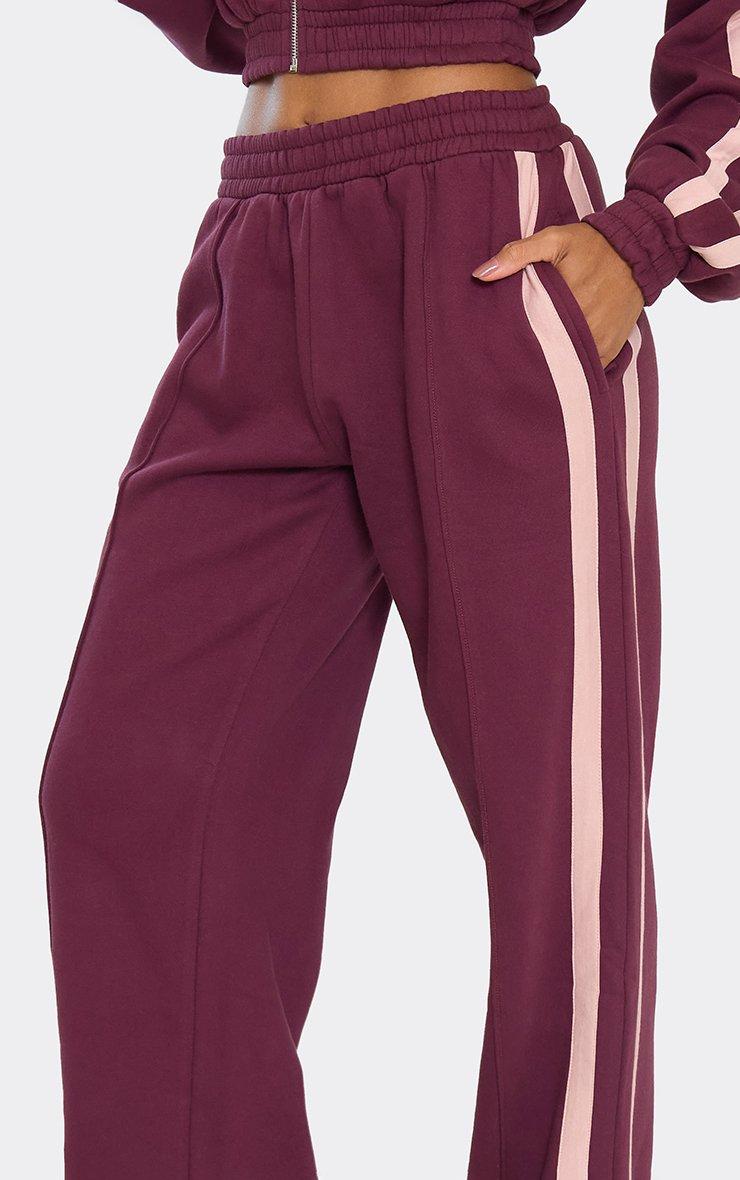 Mid Rise Contrast Stripe Straight Leg Joggers In Burgundy