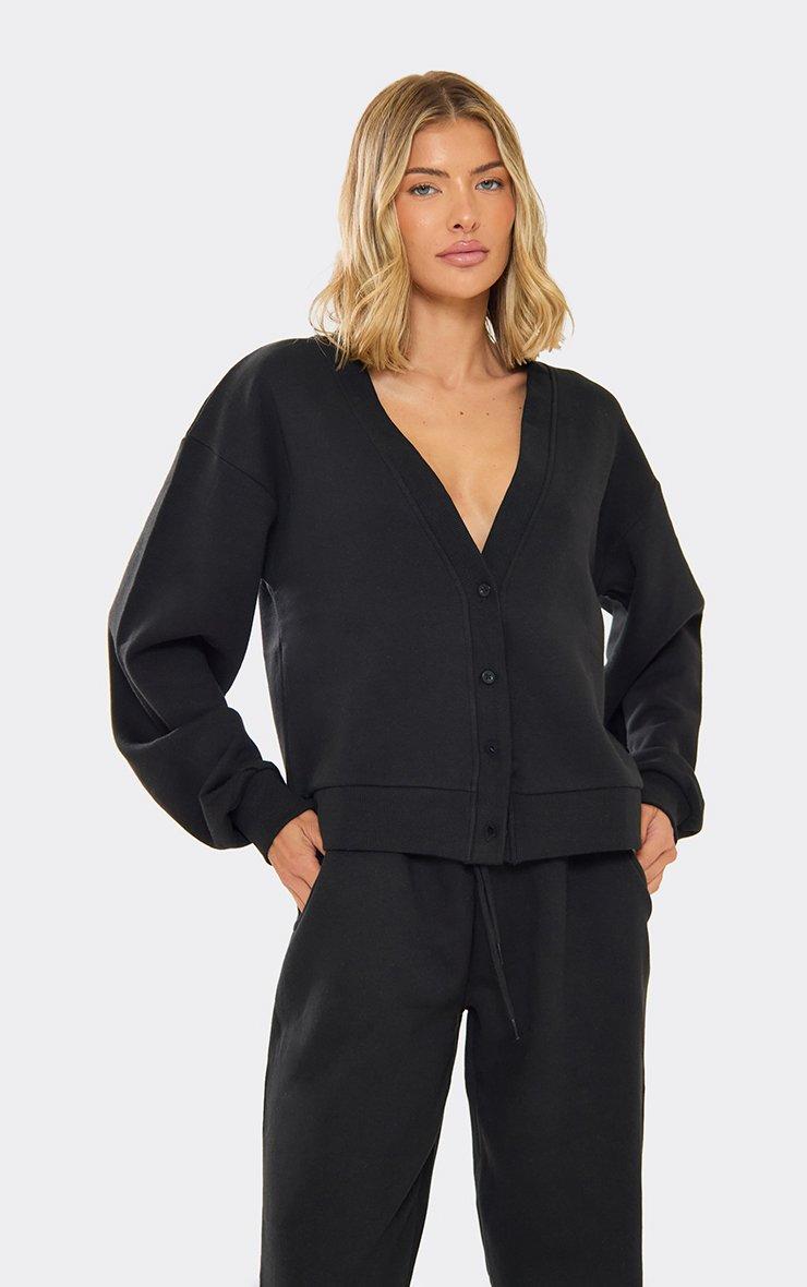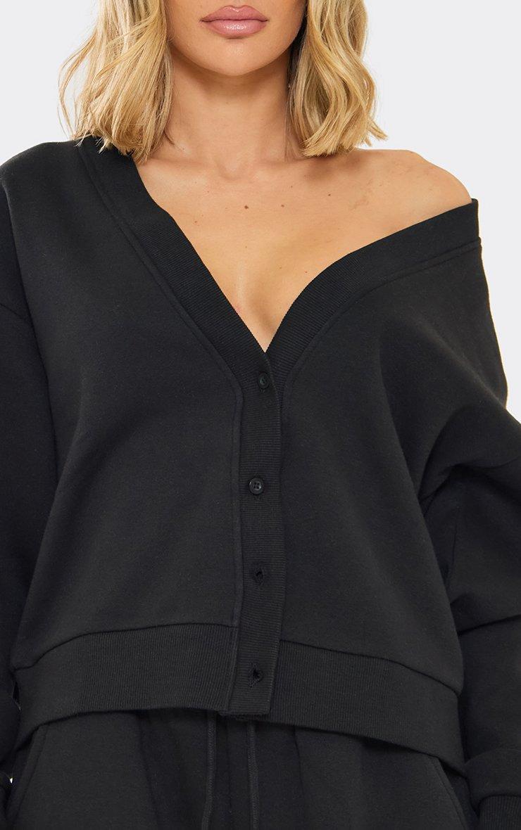 Long Sleeve Button Up Sweatshirt In Black