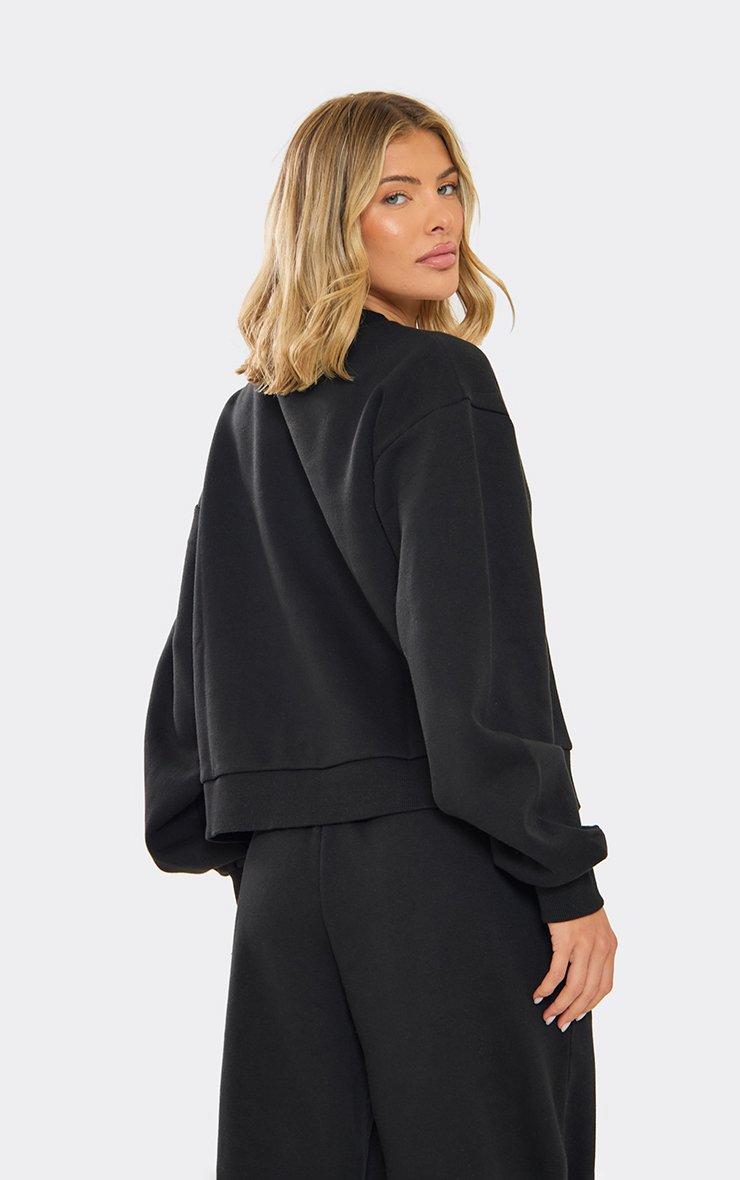 Long Sleeve Popper Detail Cinched Waist Sweatshirt In Black