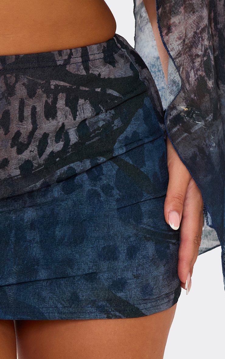 Mid Waist Mini Skirt In Black Mesh