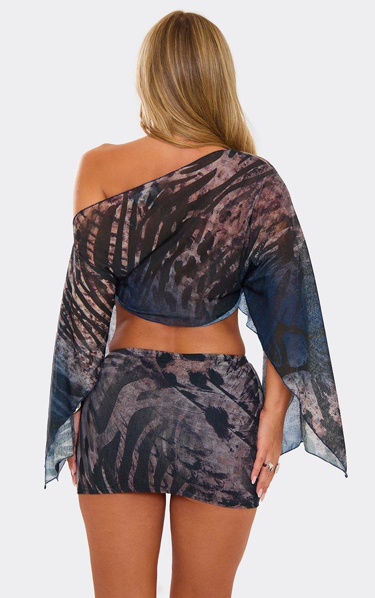Low Rise Mini Skirt In Black Multi Animal Print