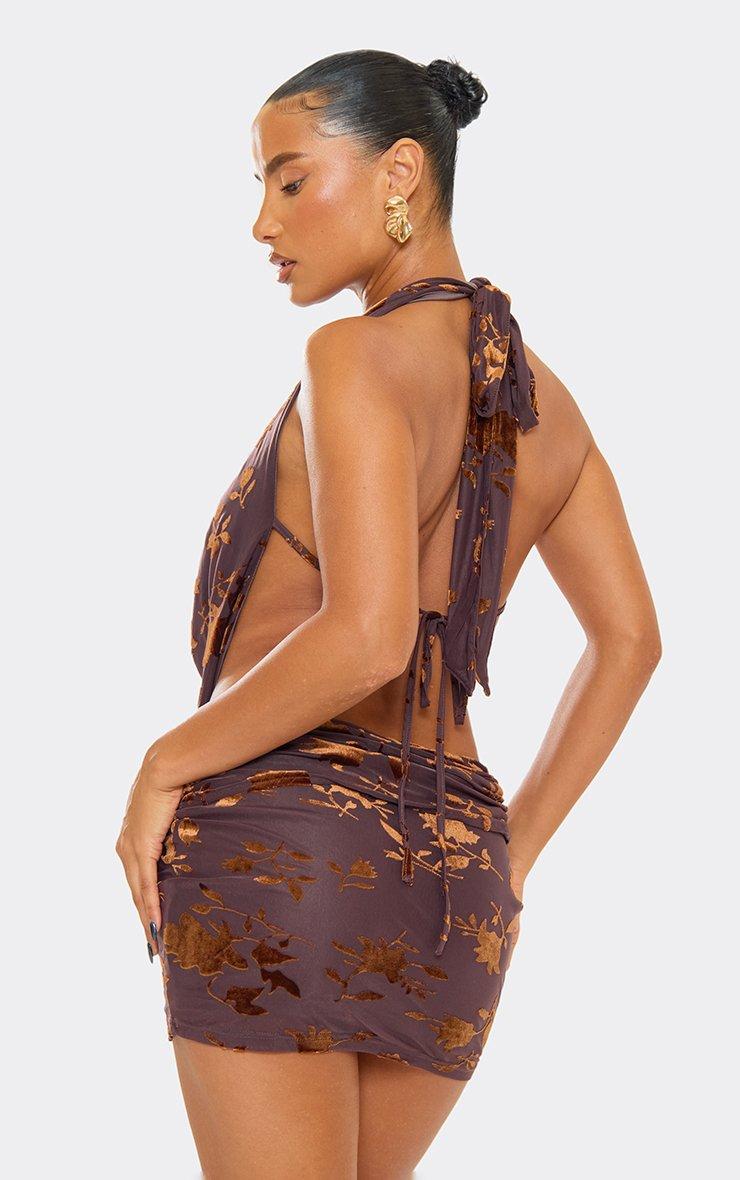 Extreme Cowl Halterneck Mini Dress In Purple Devore